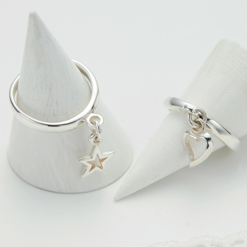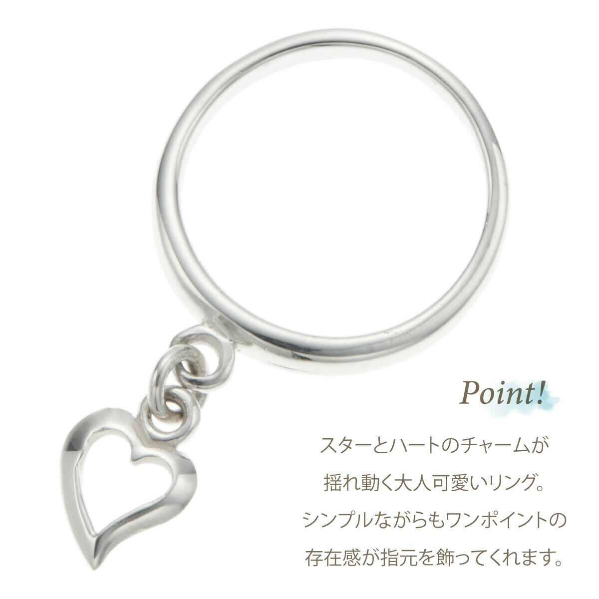チャーム付きリング レディース ハート 星 スター チャーム シルバー925 金属アレルギー対応 シンプル デイリー 細身リング シルバーアクセ 定番 おそろい プレゼント ギフト メール便 送料無料 プレゼント 春夏秋冬 大人気