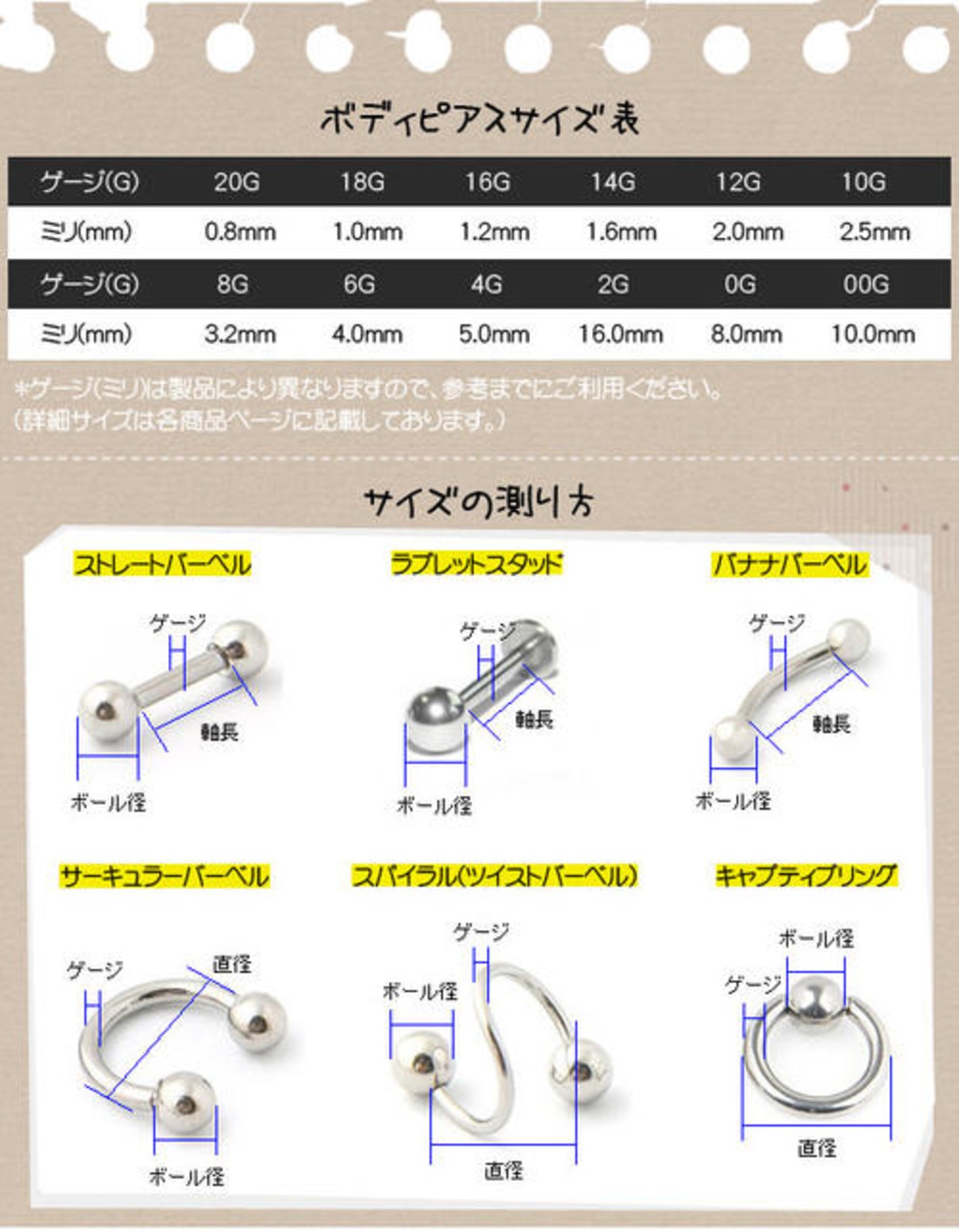 リングの内径、ゲージサイズも豊富なので、身体の色々な部位に装着できるお優れボディピアスです。