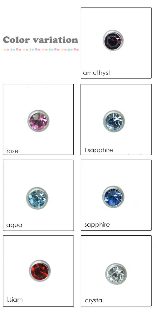 カラーはamethyst,rose,l.sapphire,aqua,sapphire,l.siam,crystal
