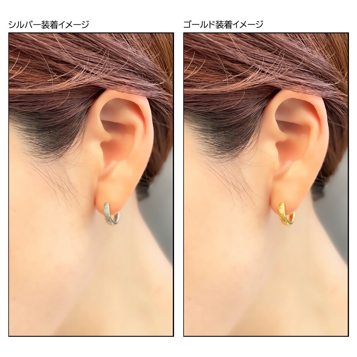 丁寧な彫りでハワイアンモチーフを描いた、小さめミニフープピアス。