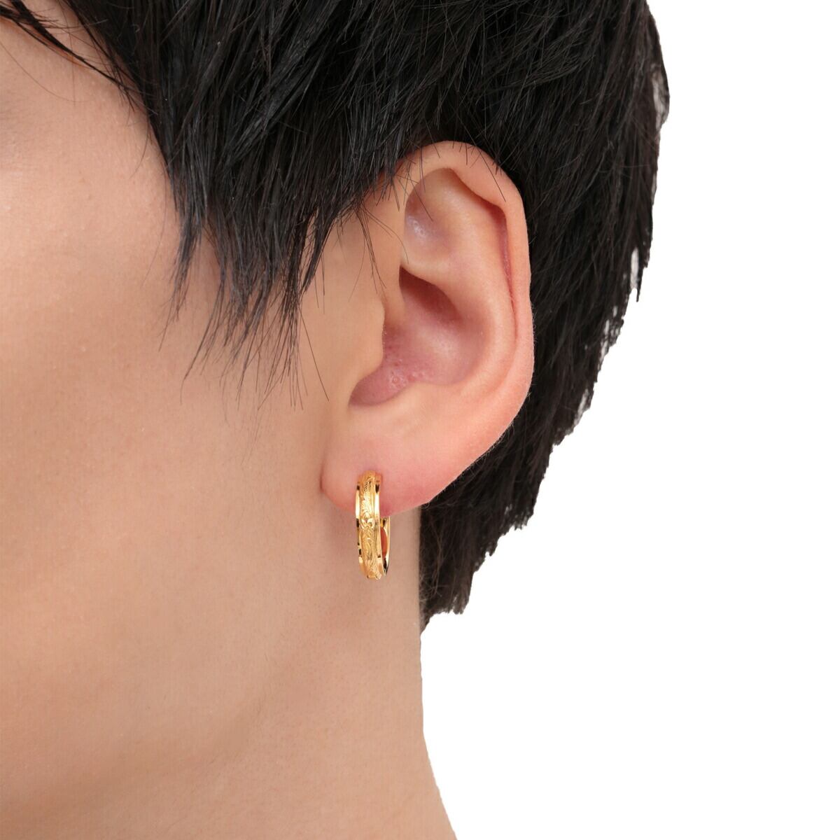 丁寧な彫でハワイアンモチーフを描いた、フープピアス。