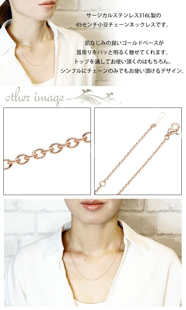 サージカルステンレス316L製の45センチ小豆チェーンネックレスです。
