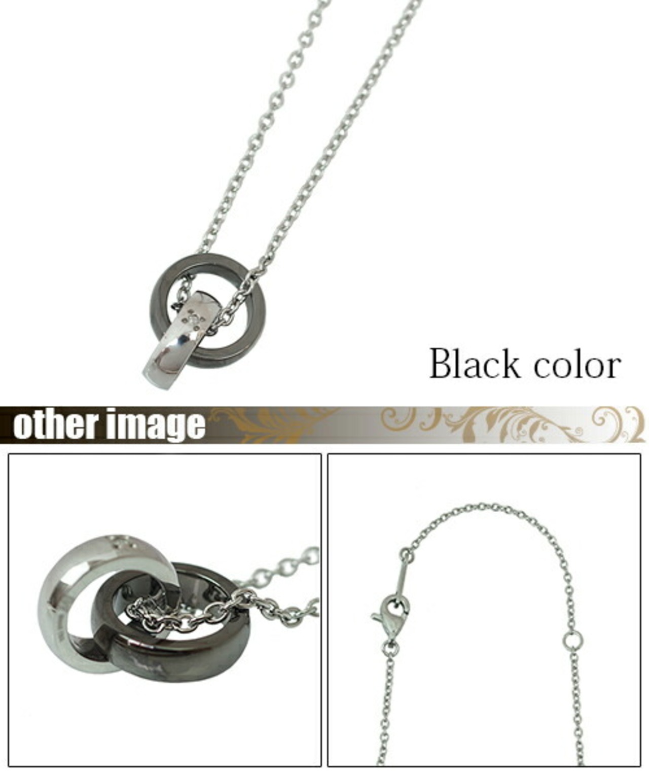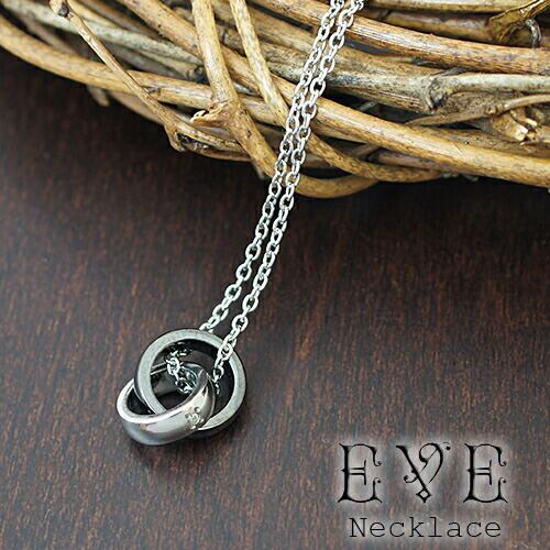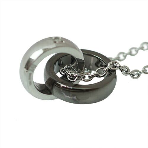 ネックレス メンズ サージカルステンレス リングが2つ重なったモチーフ ブラック ペンダント ペアネックレス単品 ダイヤモンド 送料無料 金属アレルギー対応 プレゼント 春夏秋冬 大人気