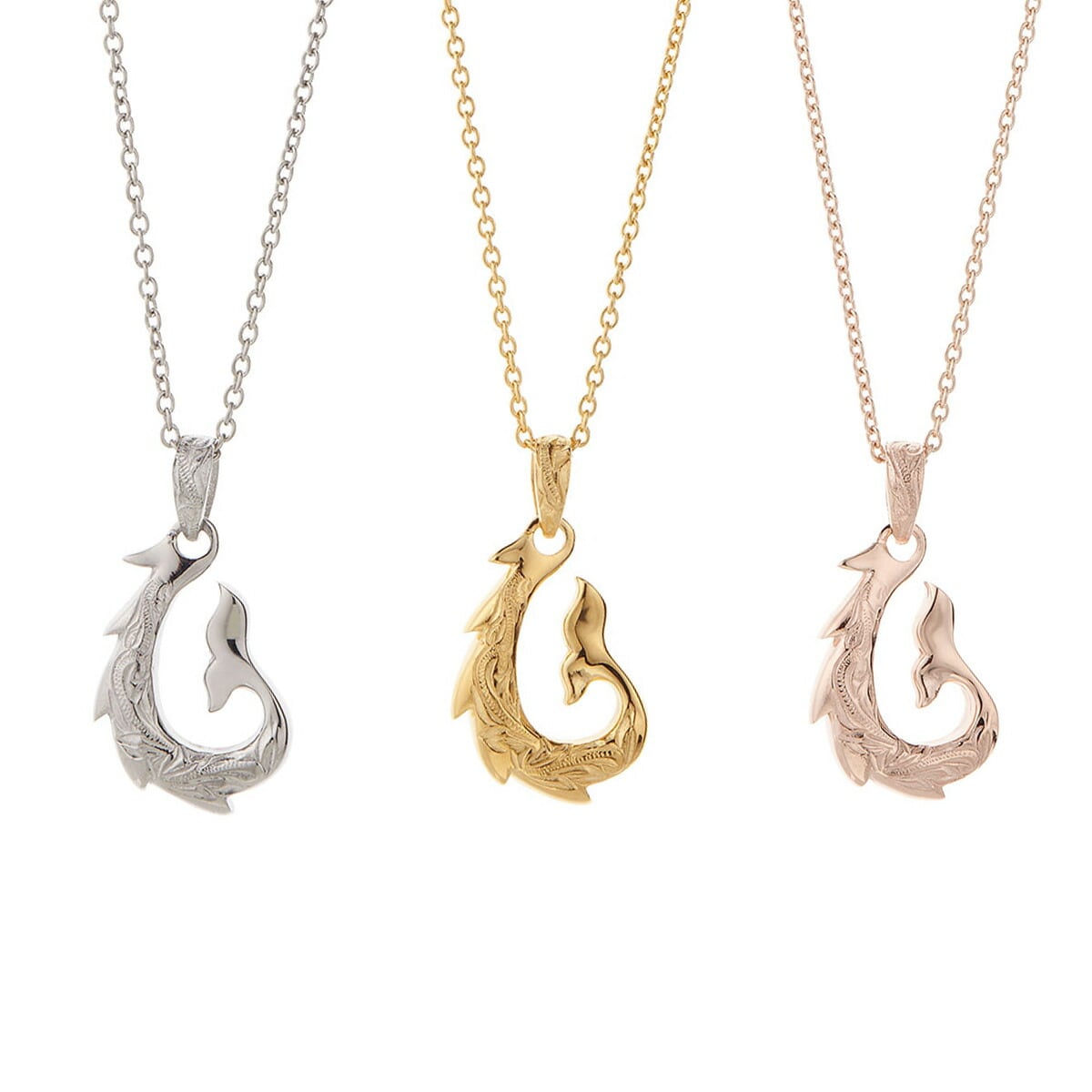 ネックレス メンズ ペア サージカルステンレス製 ハワイアンジュエリー ハワジュ ホエールテール クジラ 尻尾 釣り針 波 スクロール 葉 マイレ お肌に優しい 金属アレルギー対応 アクセサリー 45cm 50cm 選べる ペンダントお揃い 誕生日 記念日 プレゼント ギフト 送料無料