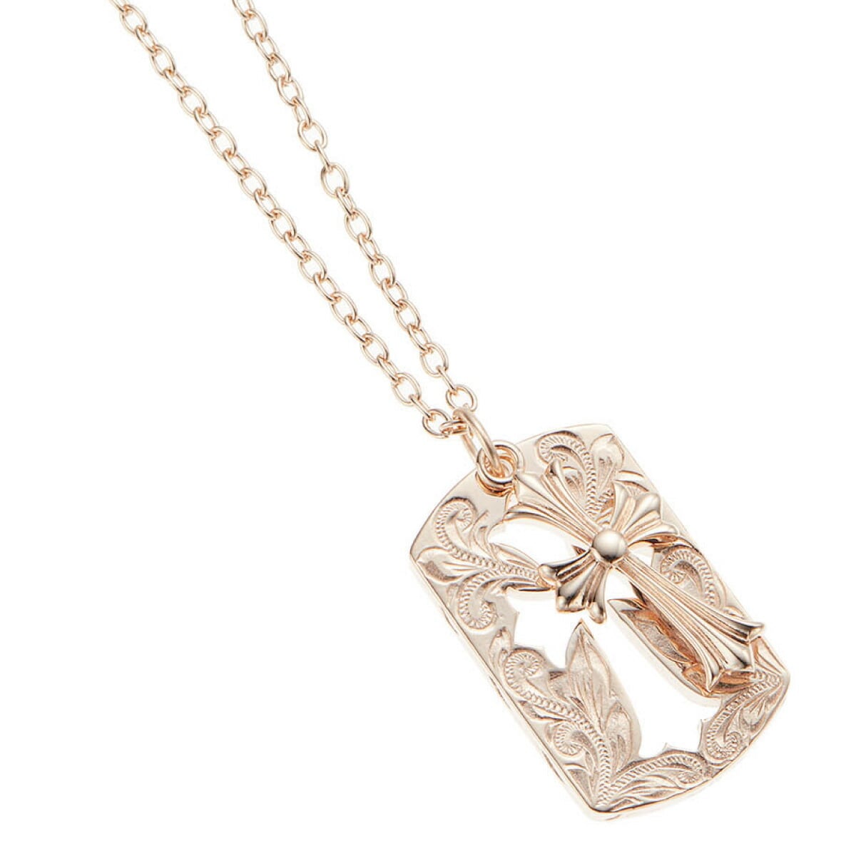繊細なハワイアン柄がほどこされたドッグタグ型のプレートと