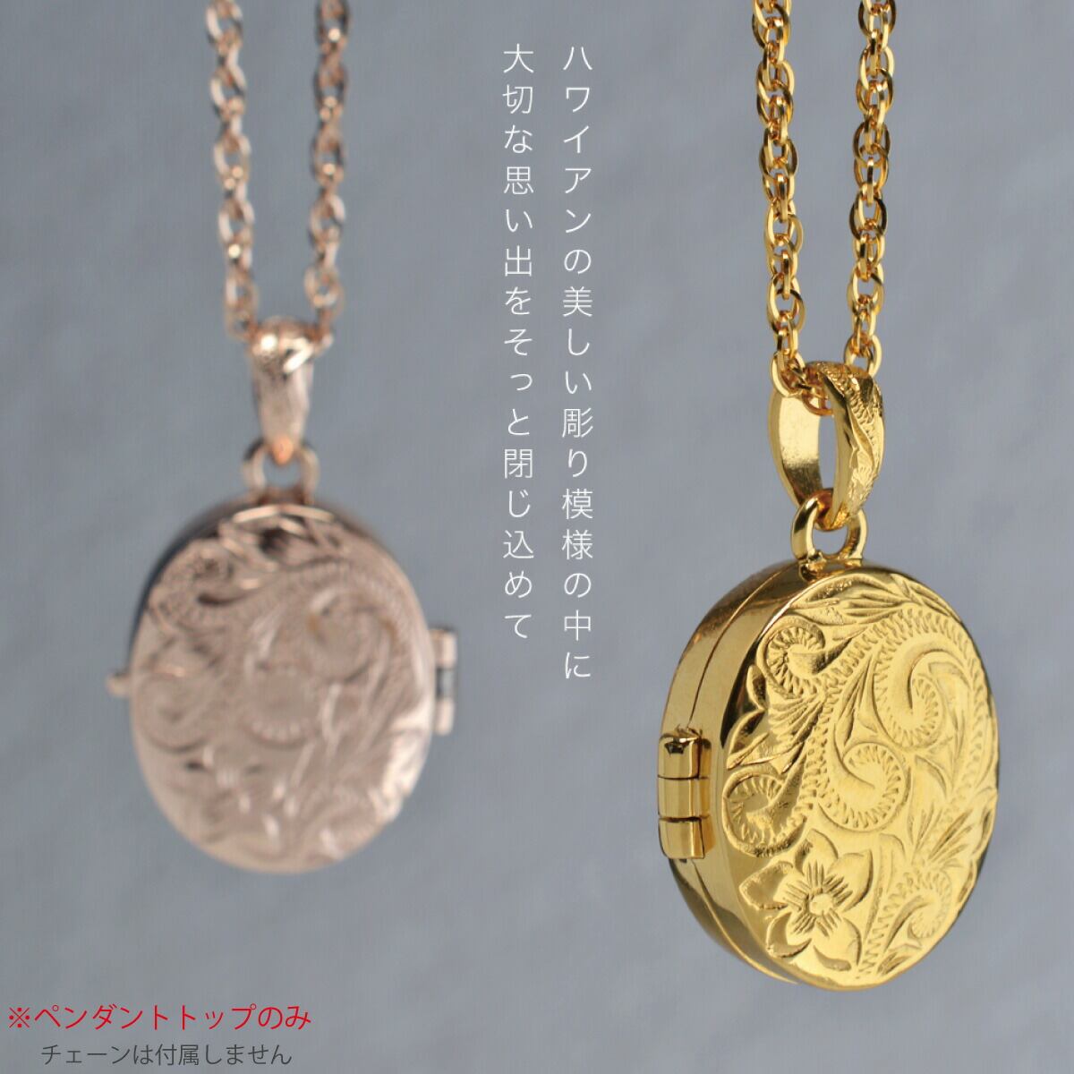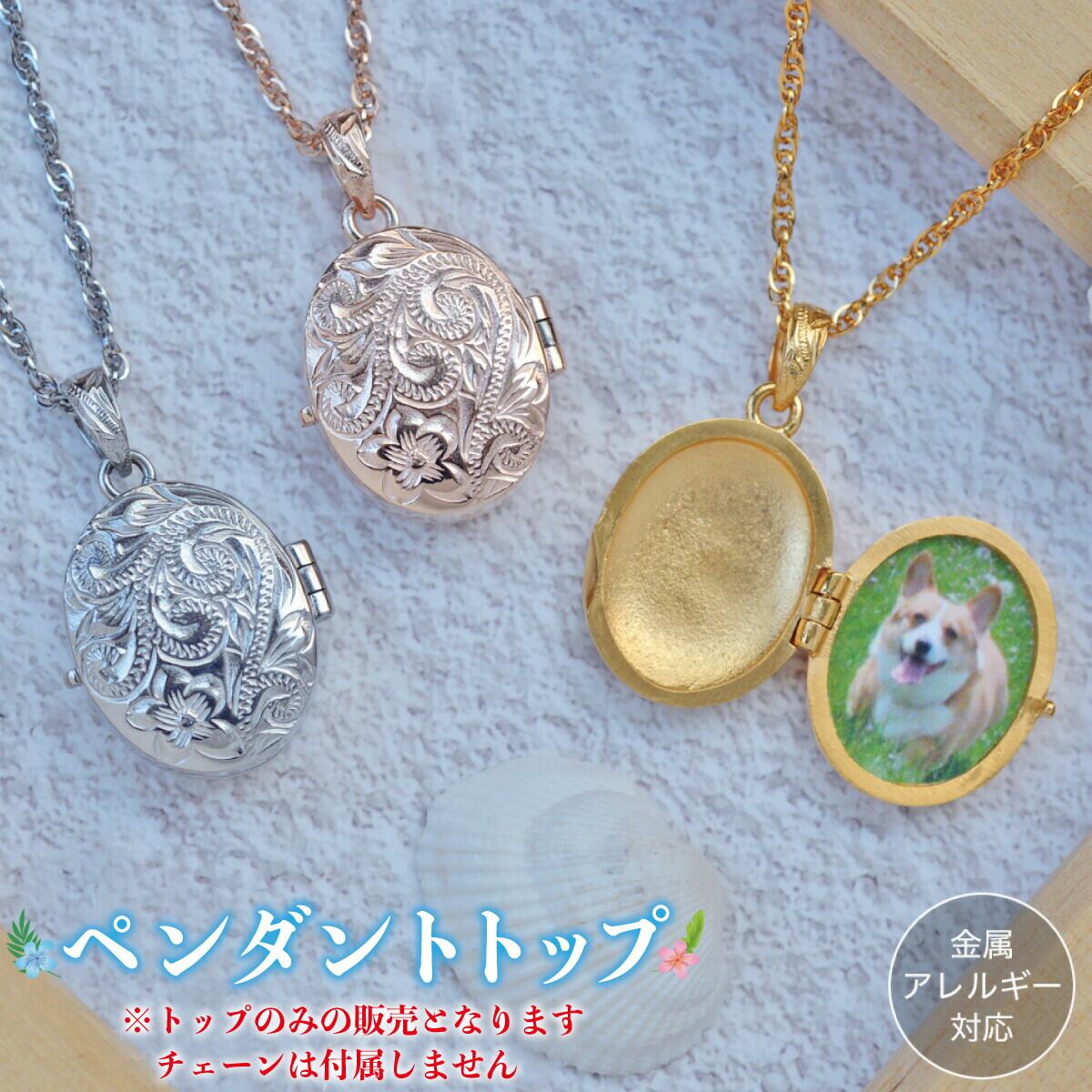 ペンダントトップ ハワイアンジュエリー トップのみ ロケット ネックレス サージカルステンレス ヘリテイジ プルメリア 波 スクロール ナル マイレ 葉 つけっぱなし 金属アレルギー対応 低アレルギー シルバー ゴールド ピンク 思い出 写真 誕生日 記念日 プレゼント