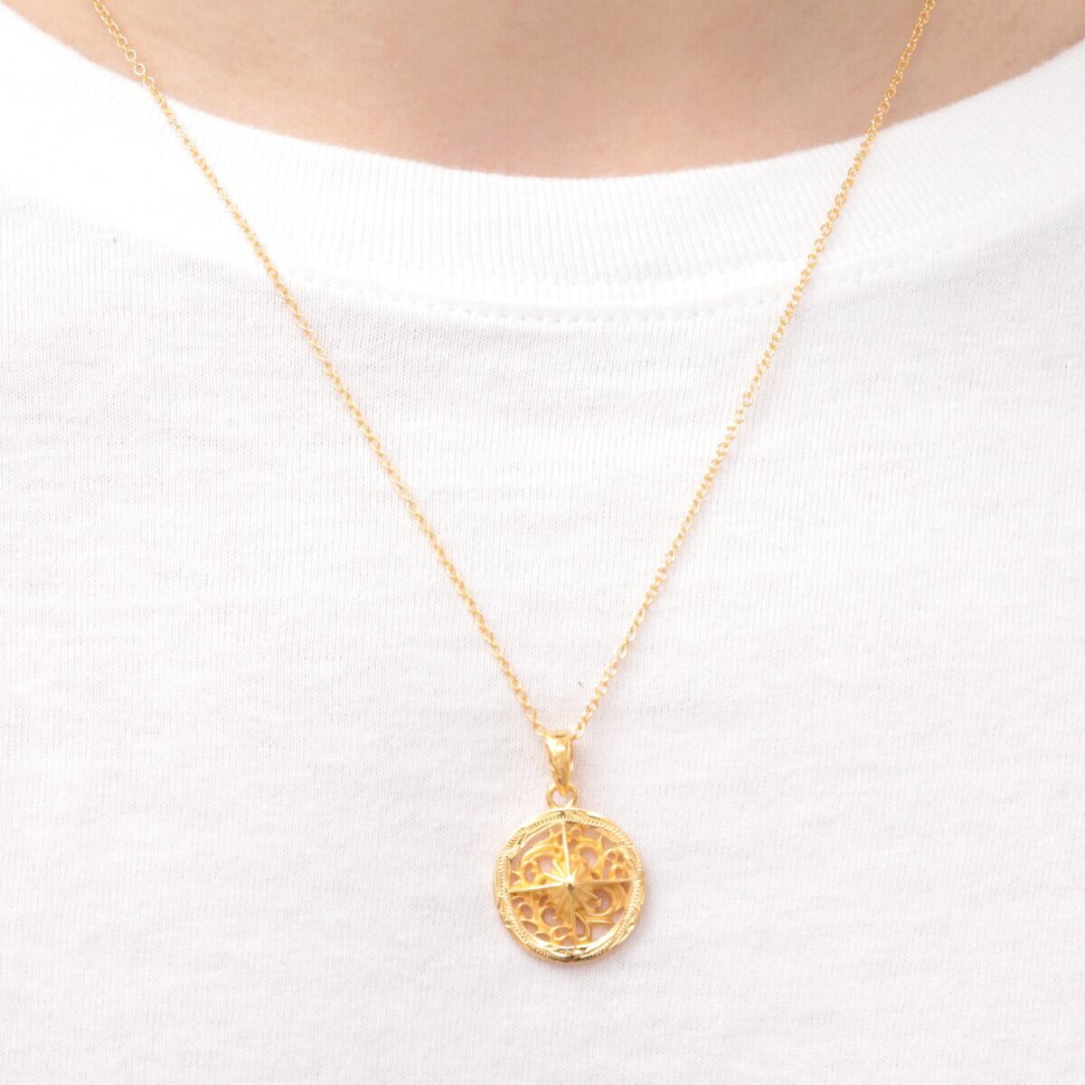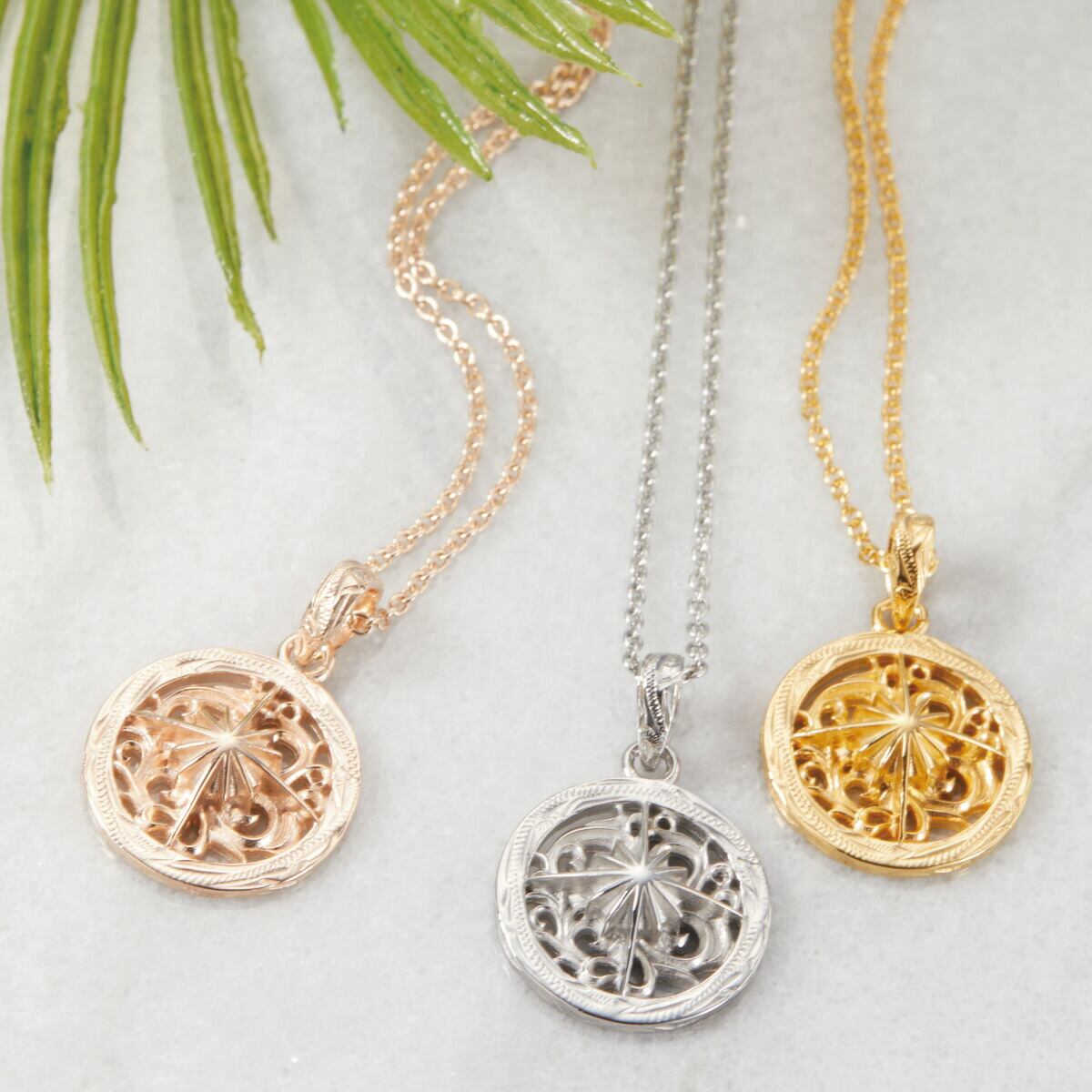 ハワイアンジュエリー ハワジュ ペンダント ネックレス メンズ 男性用 サージカルステンレス316L 太陽 サン シンボル ラウンド 透かし スクロール 波 お肌に優しい 金属アレルギー対応 金アレ 誕生日 プレゼント ギフト 送料無料