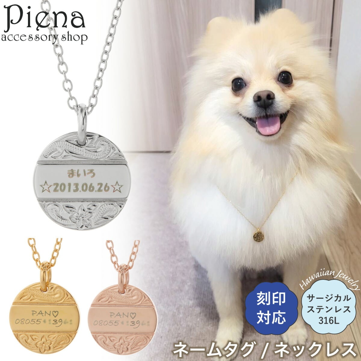 ネームタグ ドッグタグ 犬 猫 動物 迷子札 オーダー 刻印対応 ペットとお揃い ネックレス ペンダント ナスカン ハワイアンジュエリー ラウンド プレート プルメリア 花 お肌に優しい 金属アレルギー対応 誕生日 記念日 プレゼント ギフト 送料無料