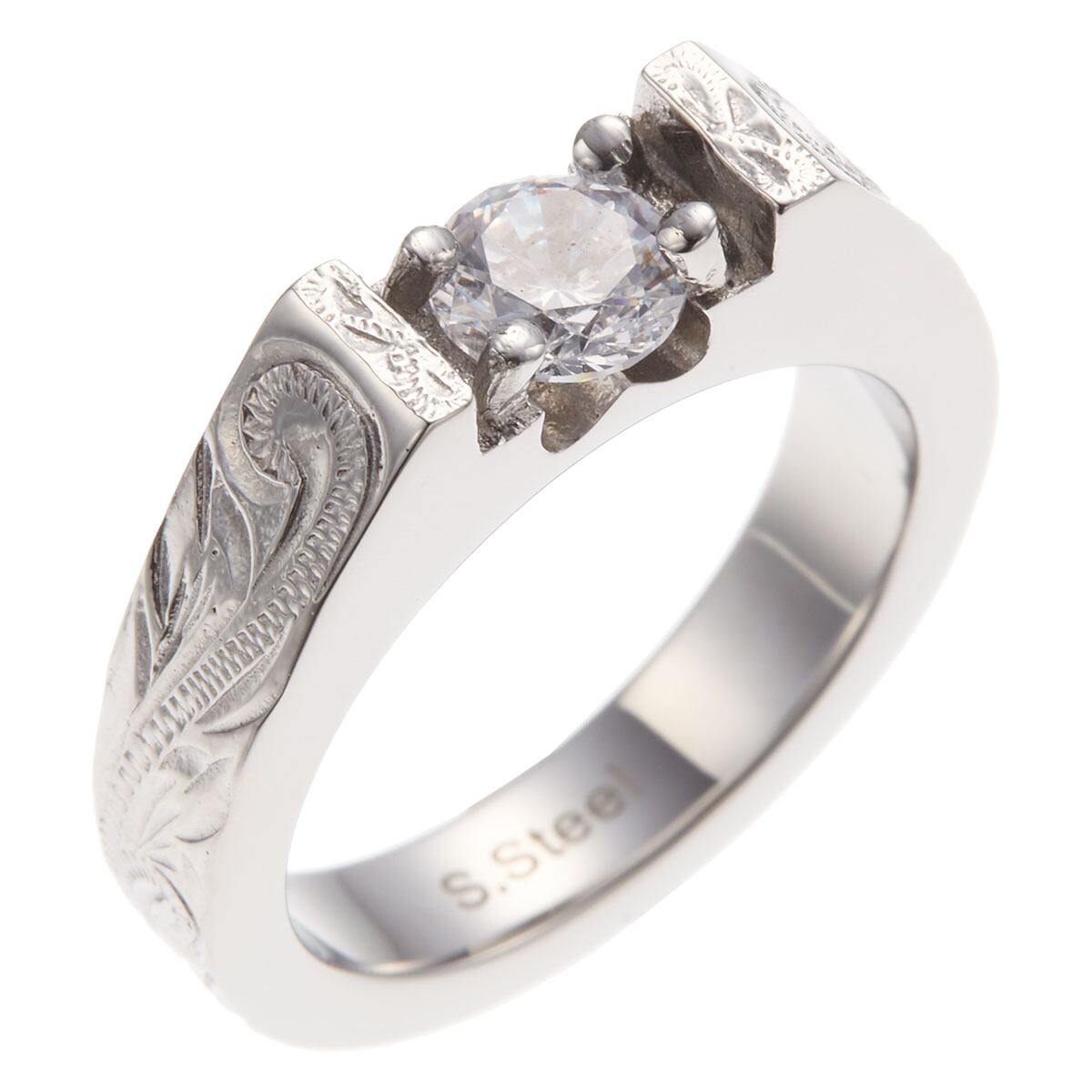 ハワイアンジュエリー ハワジュ リング メンズ 男性用 サージカルステンレス製 キュービックジルコニア 指輪 一粒石 一粒リング スクロール 波 葉 マイレ 美しい クール シンプル おしゃれ お肌に優しい 金属アレルギー対応 金アレ 誕生日 記念日 プレゼント ギフト 送料無料