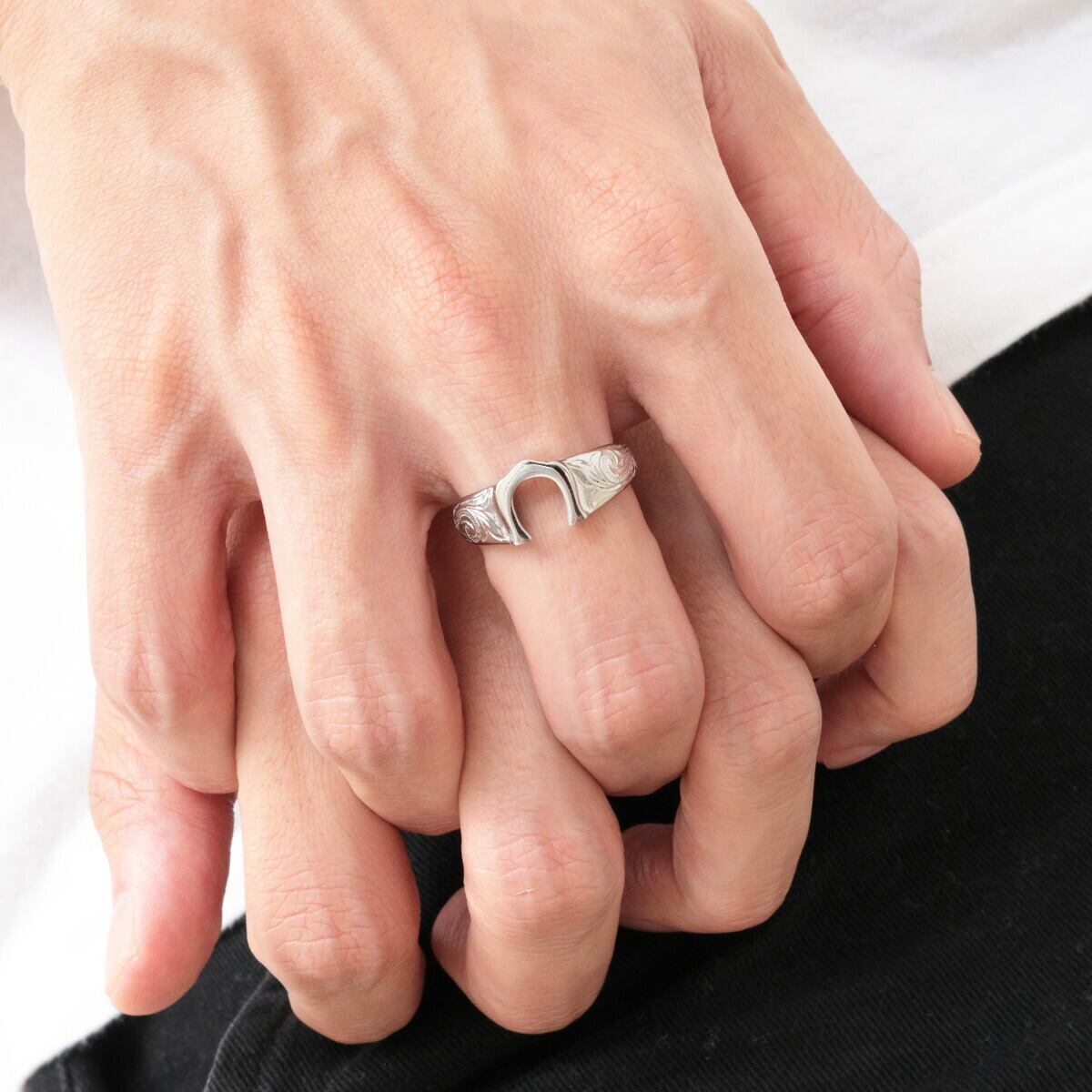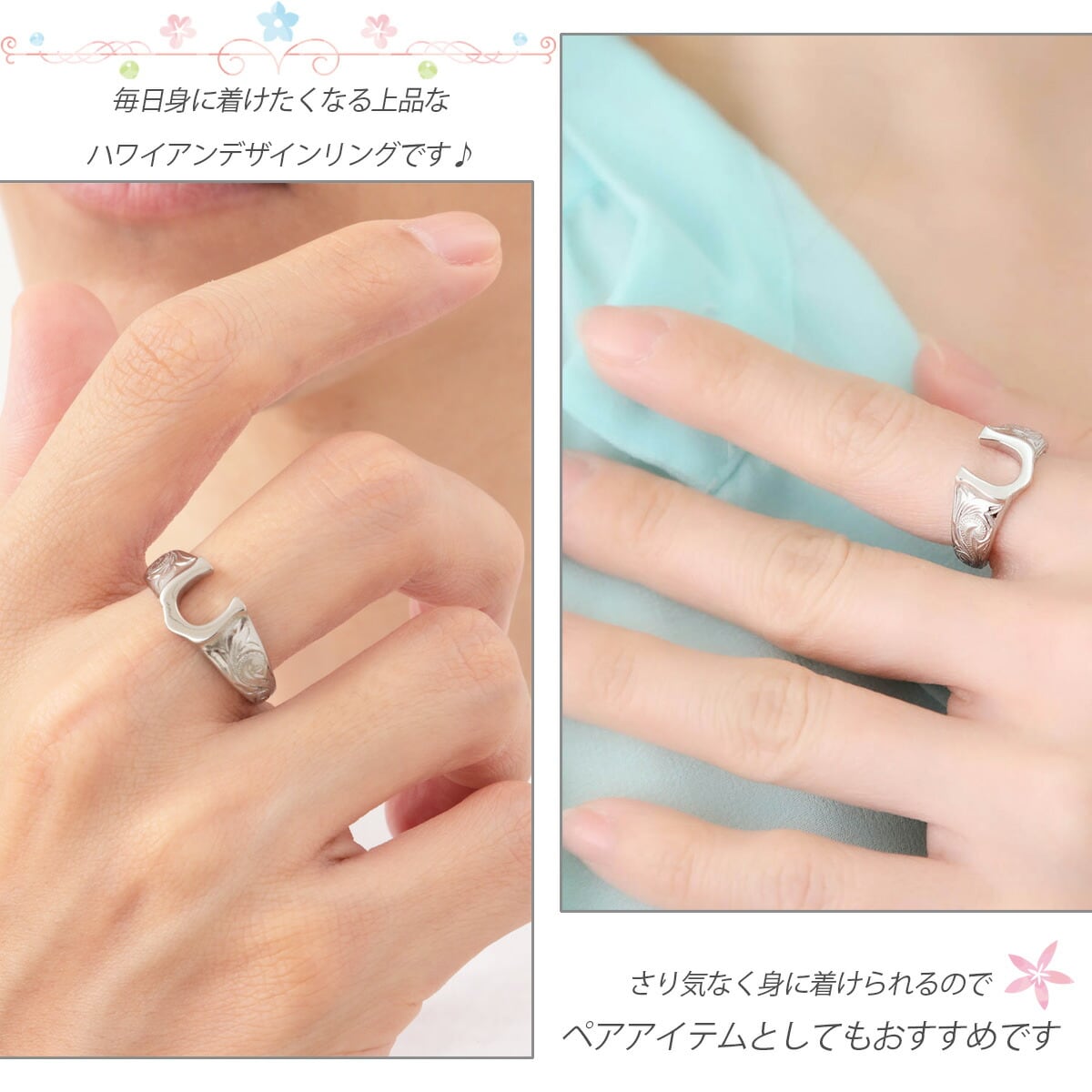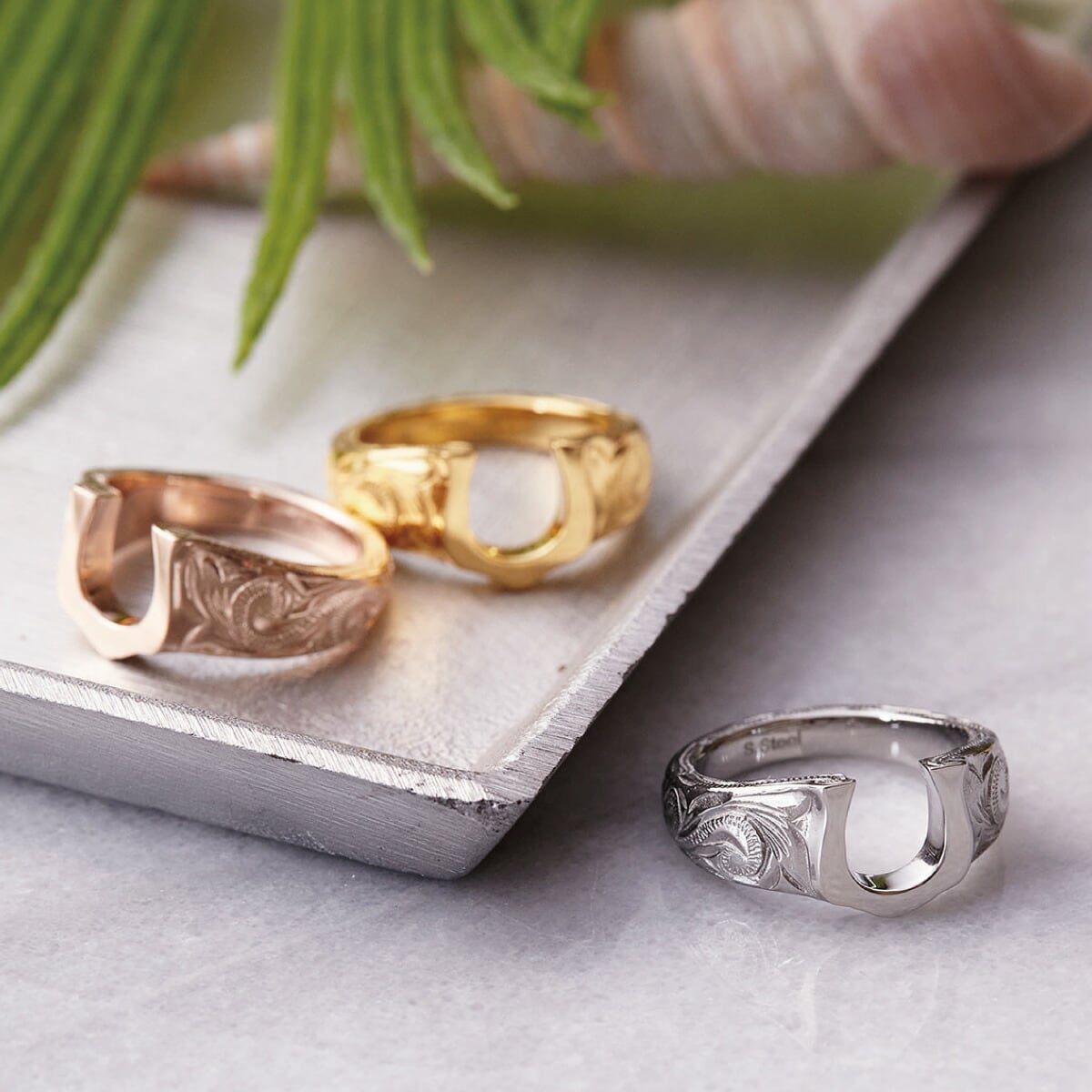 ハワイアンジュエリー ハワジュ リング メンズ 男性用 サージカルステンレス製 指輪 馬蹄 馬のひづめ ホースシュー スクロール 波 葉 マイレ 美しい 上品 クール シンプル おしゃれ お肌に優しい 金属アレルギー対応 金アレ 誕生日 記念日 プレゼント ギフト 送料無料