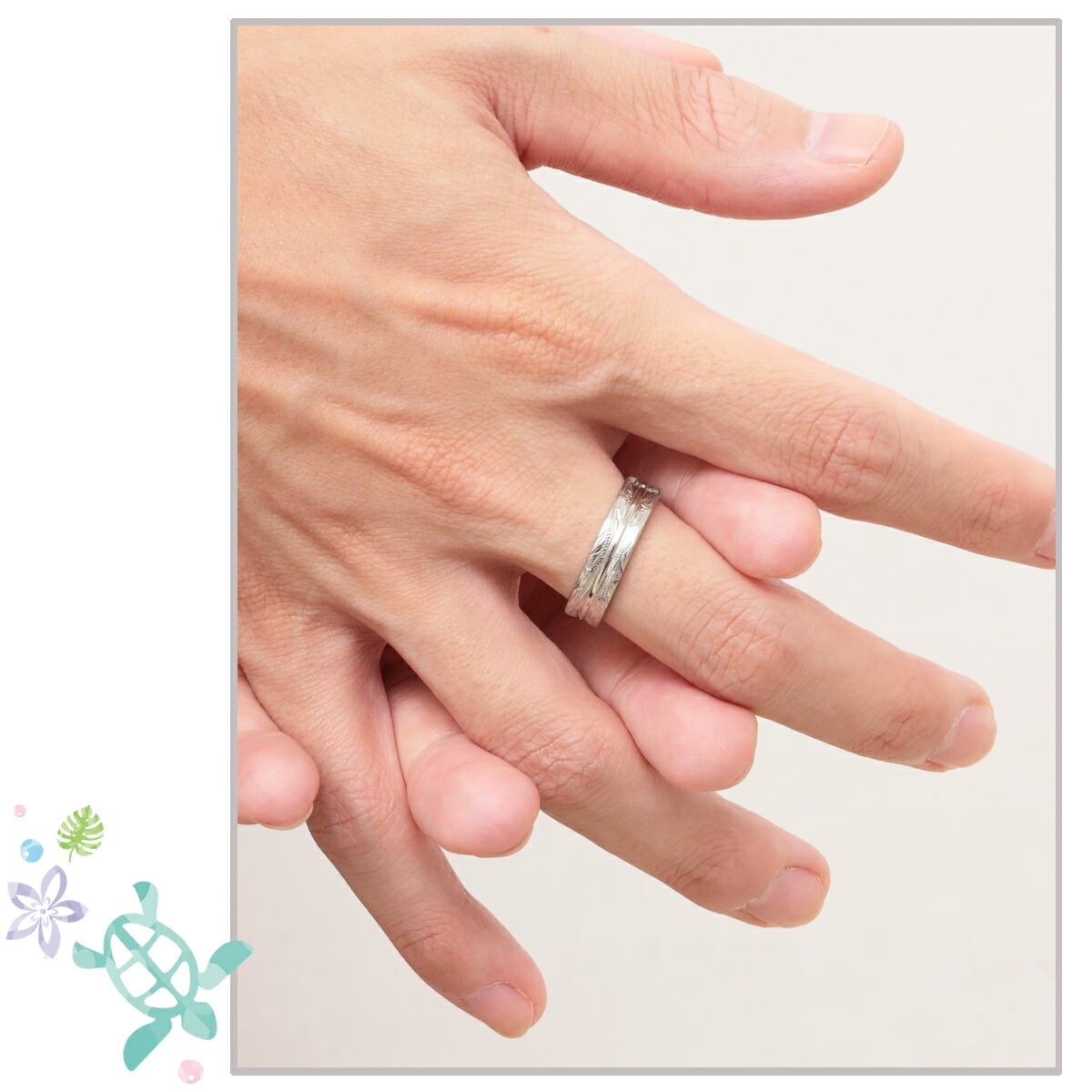 ハワイアンジュエリー ハワジュ リング メンズ 男性用 サージカルステンレス製 ミル打ち 幅広 2連リング 指輪 スクロール ナル 波 プルメリア 花 マイレ 植物 上品 クール シンプル おしゃれ お肌に優しい 金属アレルギー対応 金アレ 誕生日 記念日 プレゼント 送料無料