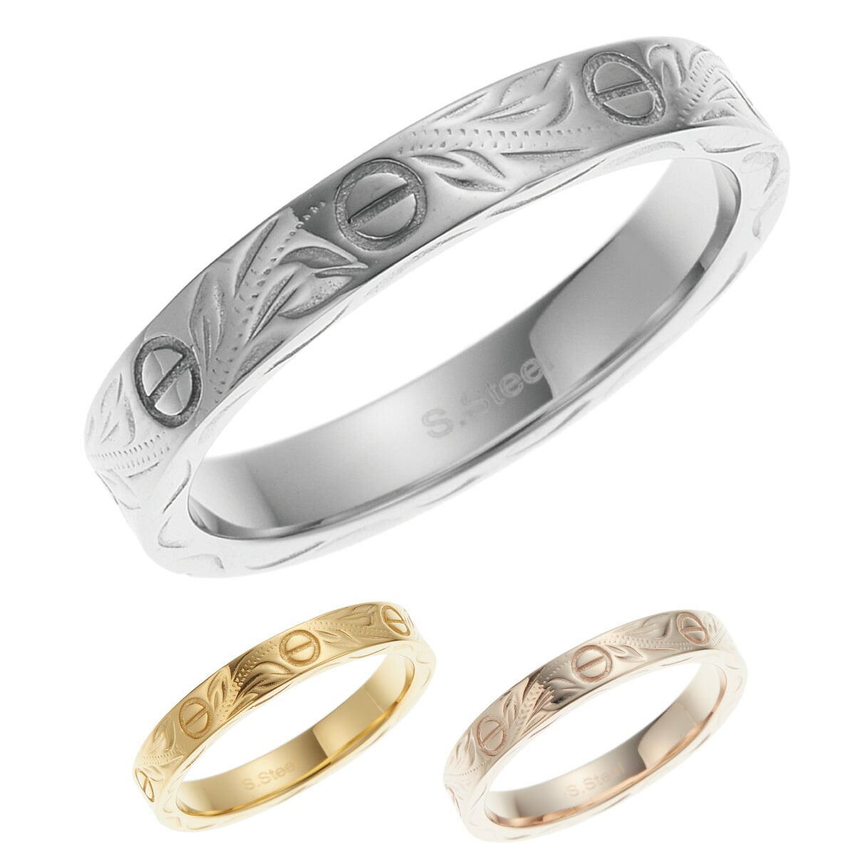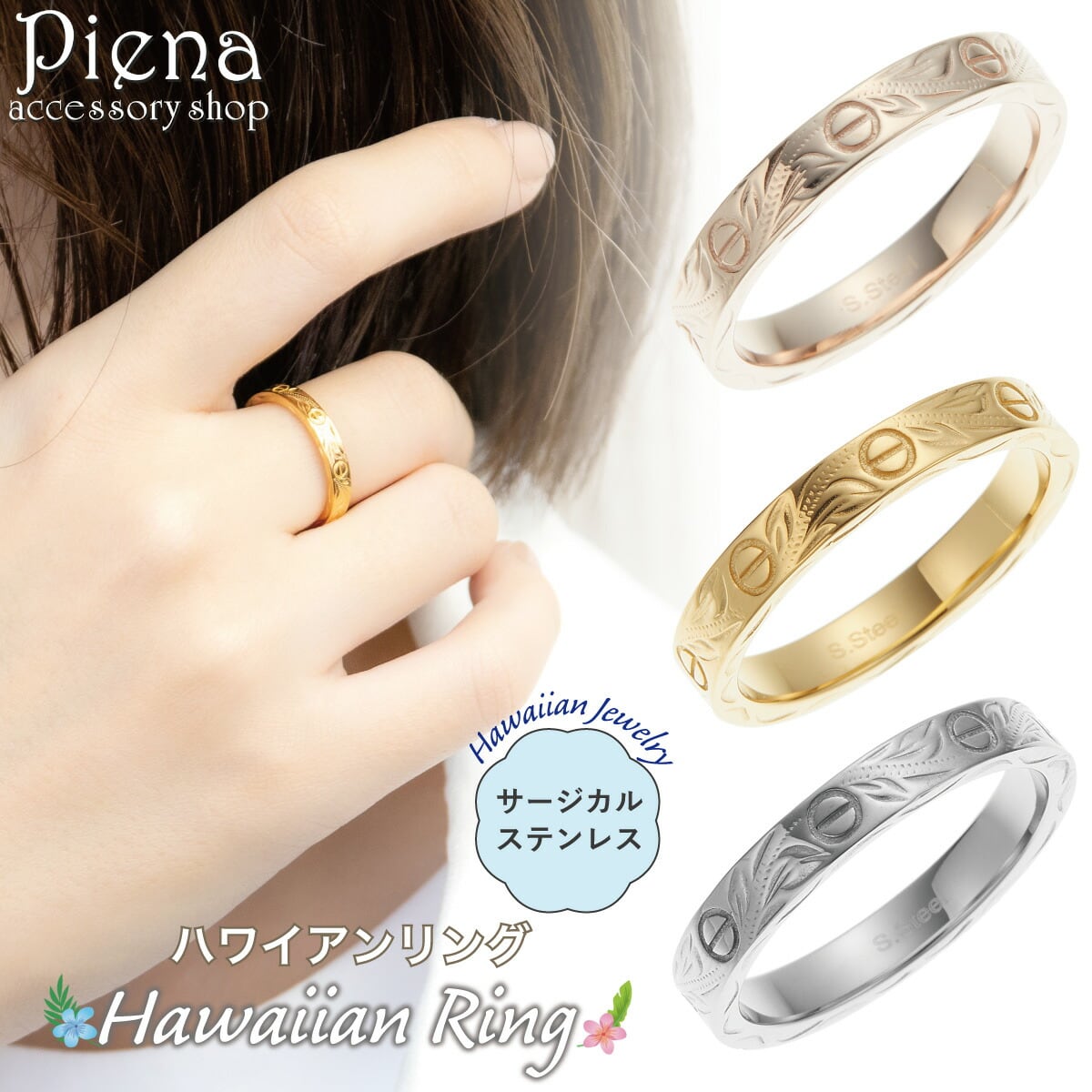 リング レディース メンズ サージカルステンレス316L製 ハワイアンジュエリー ハワジュ ビスモチーフ ビスマーク 植物 マイレ お肌に優しい 金属アレルギー対応 金アレ お揃い ペアにも 誕生日 記念日 プレゼント ギフト 送料無料
