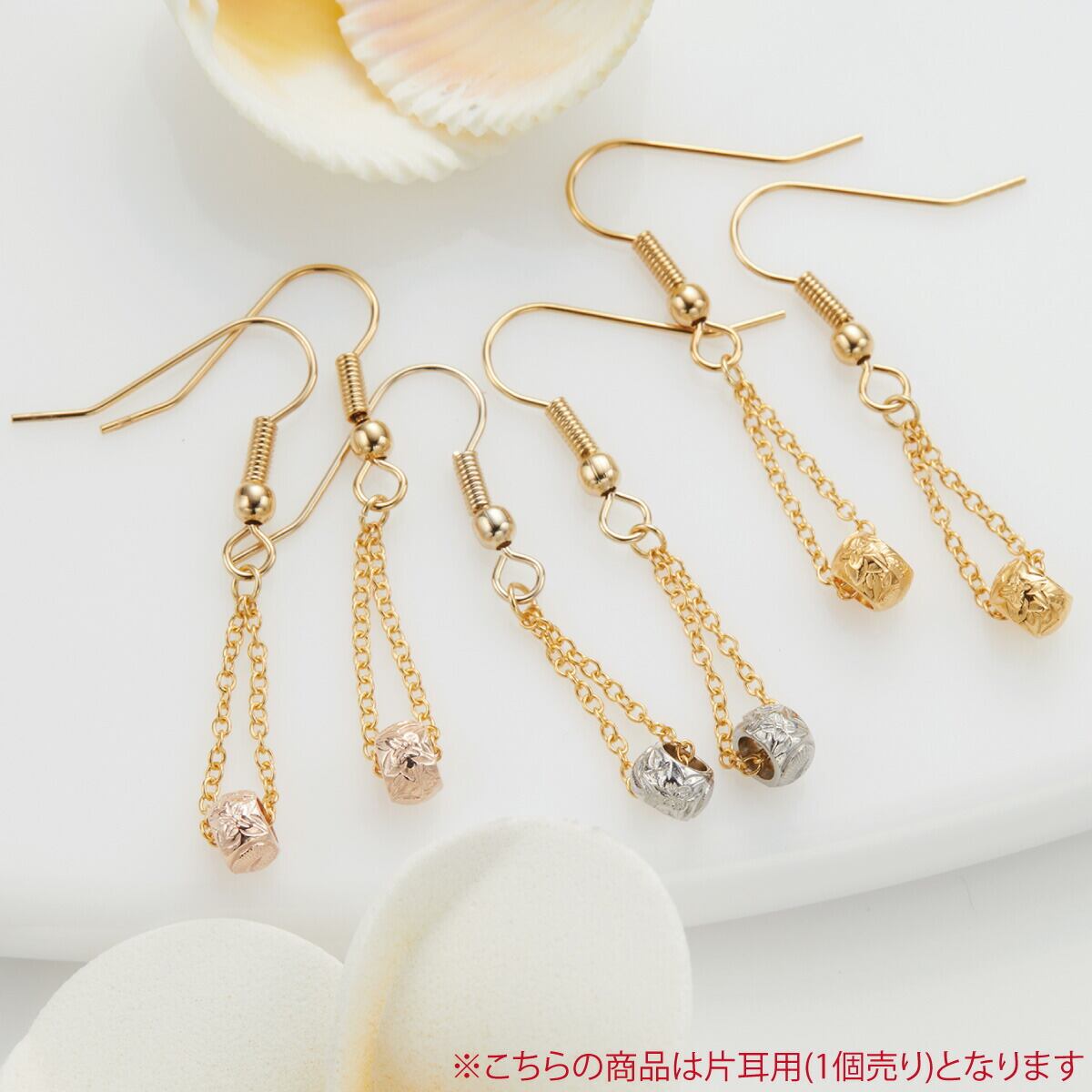 フックピアス つけっぱなし レディース 片耳用 1個売り サージカルステンレス316L製 ビーズ ハワイアンジュエリー ハワジュ 花 プルメリア 波 スクロール 揺れる お肌に優しい 金属アレルギー対応 金アレ 上品 かわいい 誕生日 記念日 プレゼント ギフト メール便送料無料