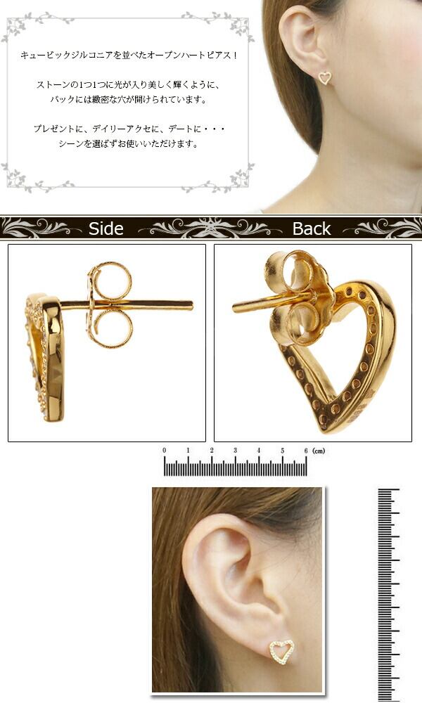 スタッドピアス シルバー925 キュービックジルコニアを並べたオープンハートピアス キュート ガーリー 金属アレルギー対応 プレゼント ギフト silver925 Selilya メール便 送料無料 プレゼント 春夏秋冬 大人気 あす楽