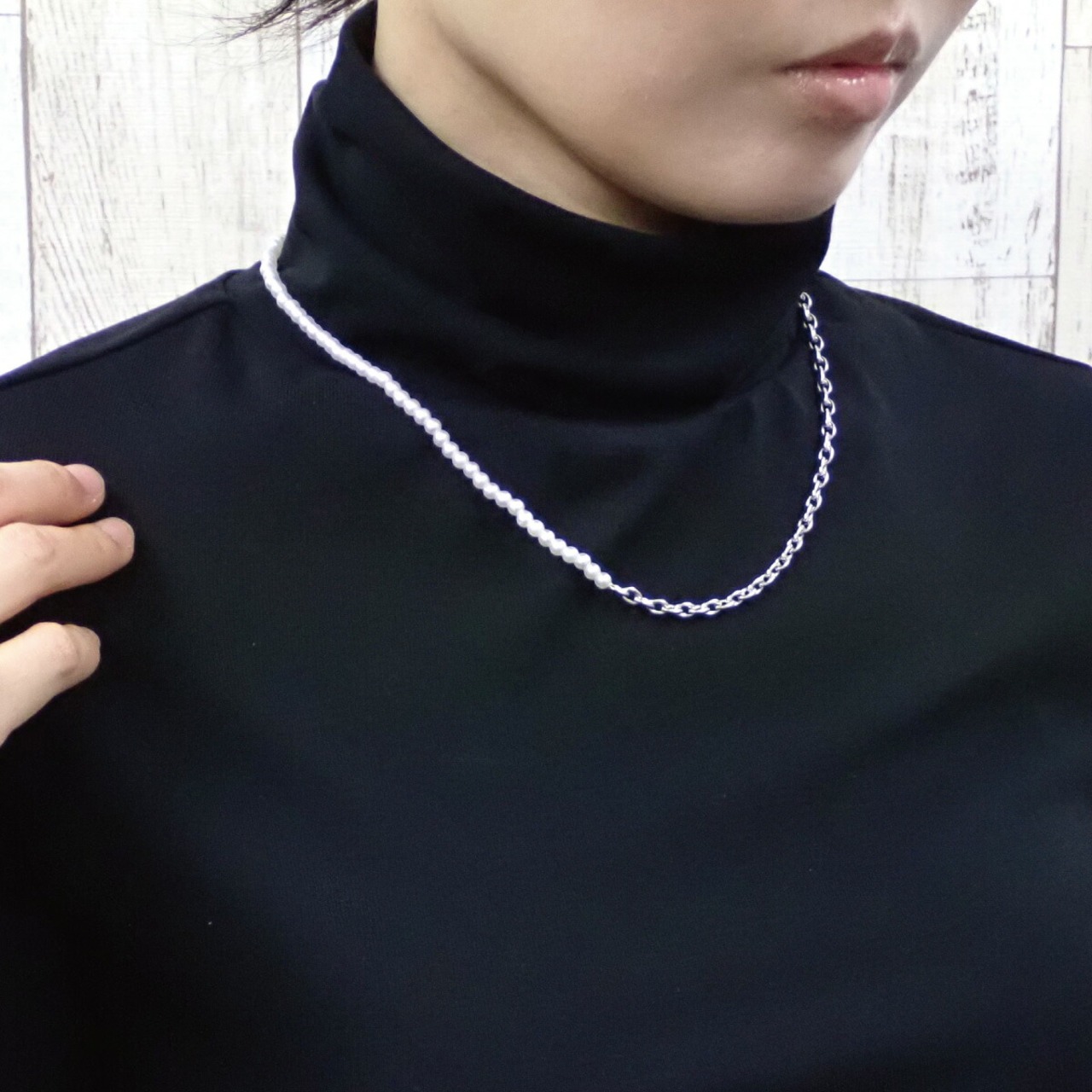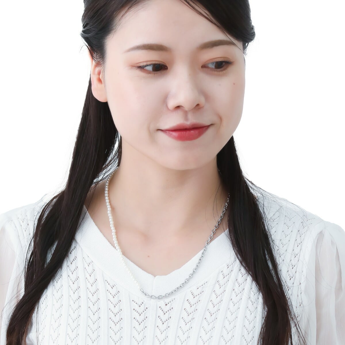 ネックレス レディース サージカルステンレス316L製 パール アズキチェーン 異素材 アシンメトリー ドレスに合う お肌に優しい 金属アレルギー対応 上品 かわいい パーティー 誕生日 記念日 プレゼント ギフト メール便送料無料
