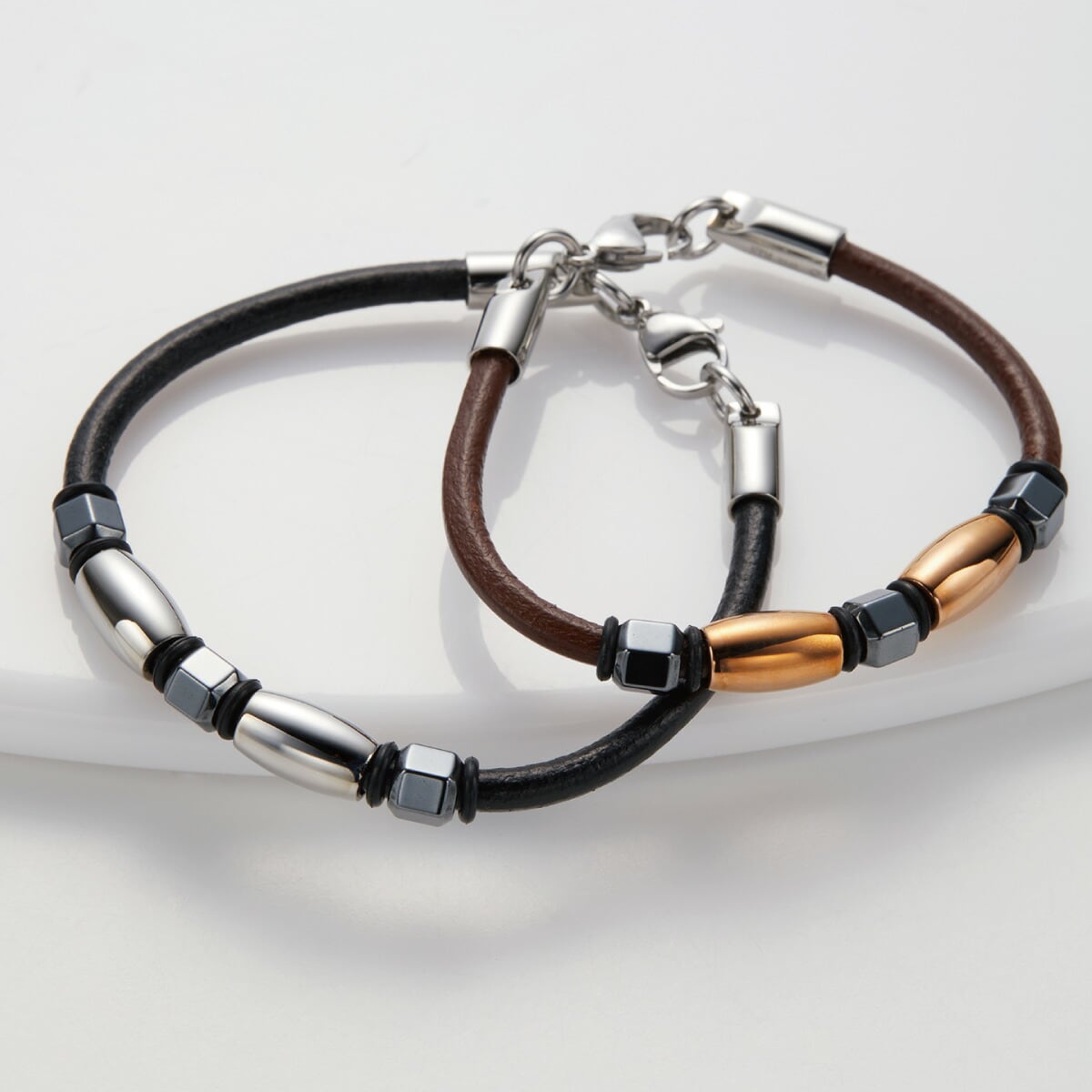 ブレスレット レディース メンズ 革 レザー サージカルステンレス316L製 シンプル お揃い ペアにも カップル 上品 お肌に優しい 金属アレルギー対応 記念日 誕生日 プレゼント ギフト メール便送料無料