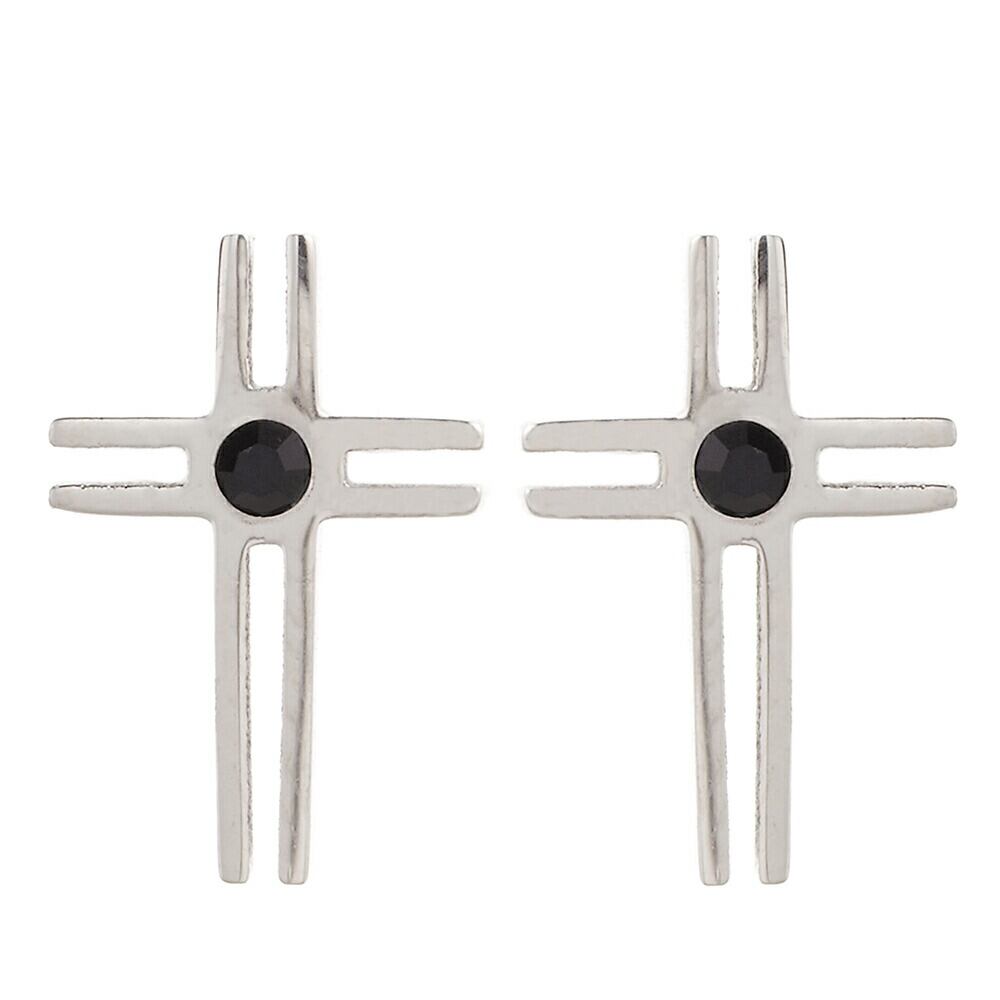 人気のモチーフ「クロス」の中央で輝くブラックストーンが目を惹くピアスです。