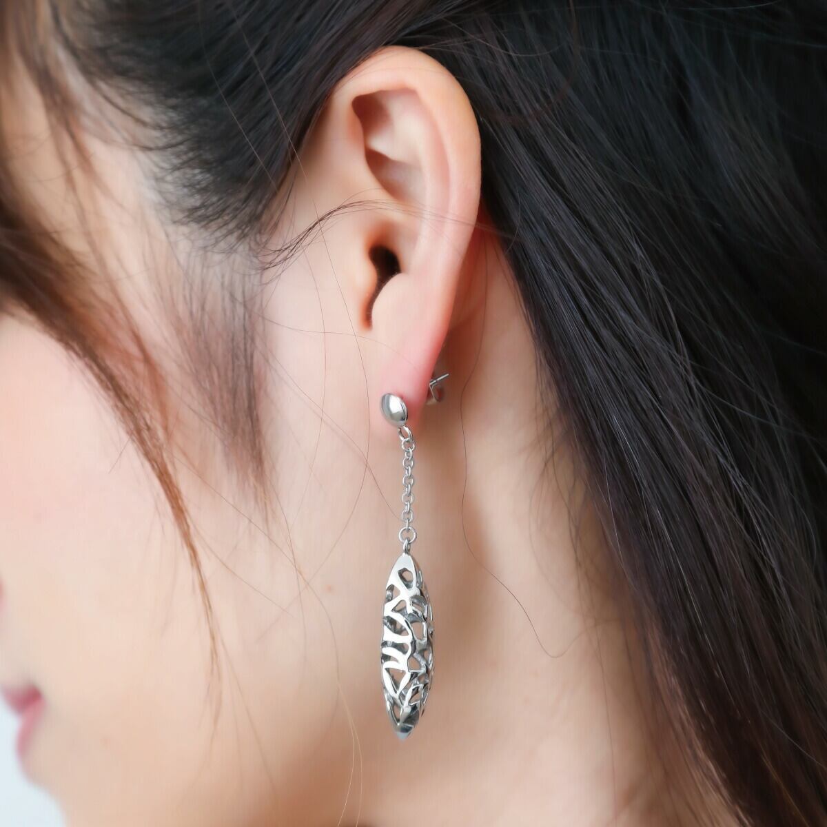 ピアス つけっぱなし レディース サージカルステンレス製 マーキス型 網 唐草 揺れる 抜け感 お肌に優しい 金属アレルギー対応 上品 かわいい 大人可愛い パーティー 誕生日 記念日 プレゼント ギフト メール便送料無料