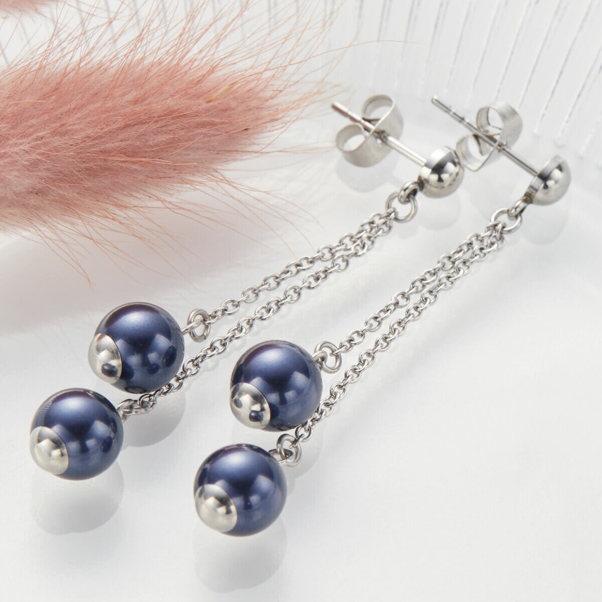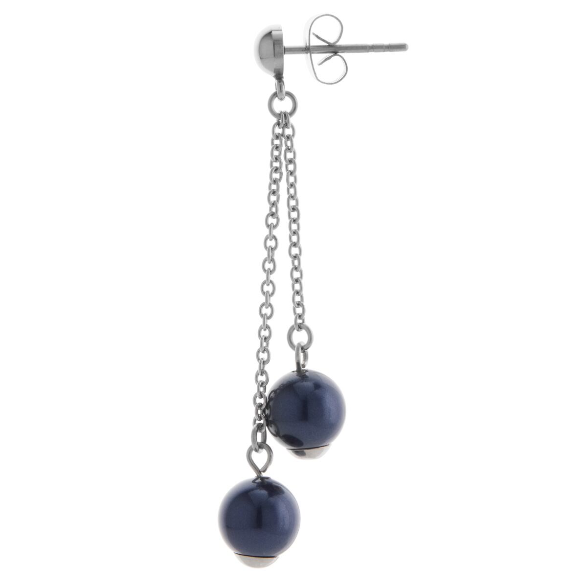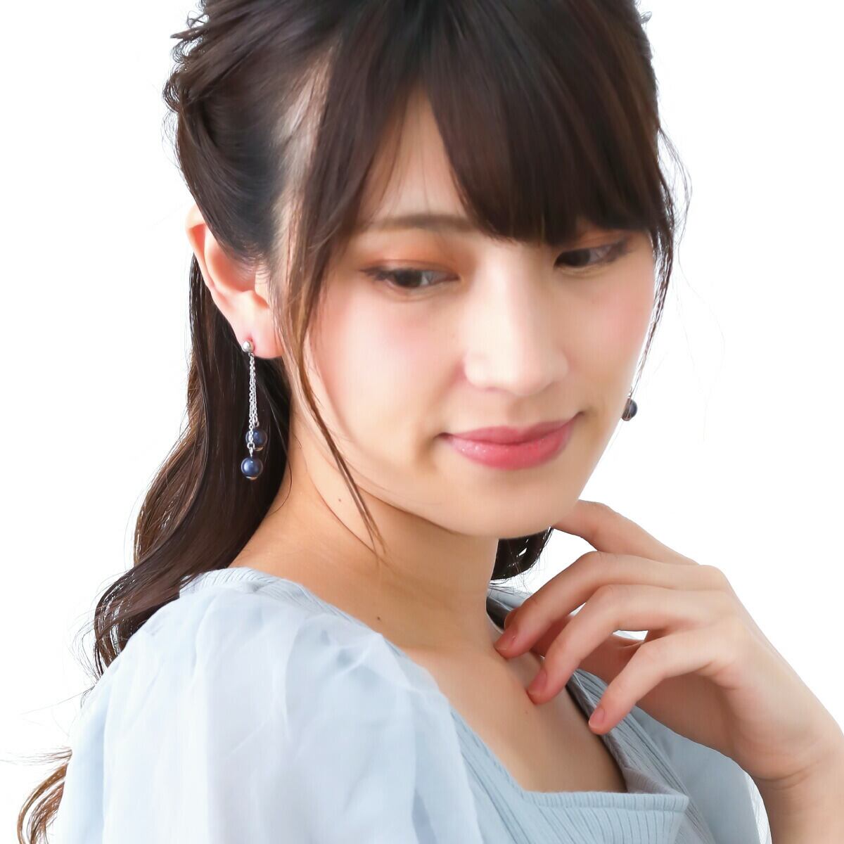 ピアス つけっぱなし レディース サージカルステンレス製 ナイトブルーパール チェーン ロング 揺れる お肌に優しい 金属アレルギー対応 上品 かわいい 大人可愛い パーティー 誕生日 記念日 プレゼント ギフト メール便送料無料