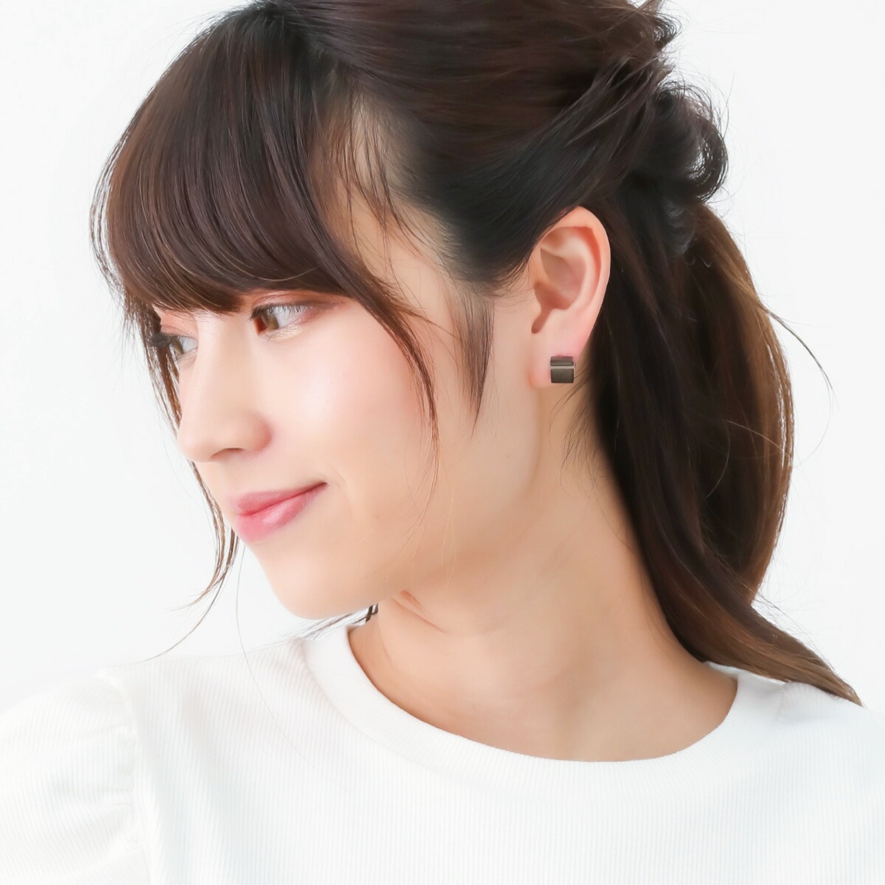 ピアス つけっぱなし レディース サージカルステンレス製 スクエア 黒 ブラック シルバーライン お肌に優しい 金属アレルギー対応 上品 オシャレ かわいい 大人可愛い パーティー 誕生日 記念日 プレゼント ギフト メール便送料無料