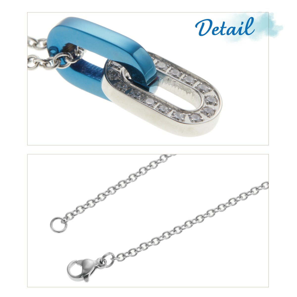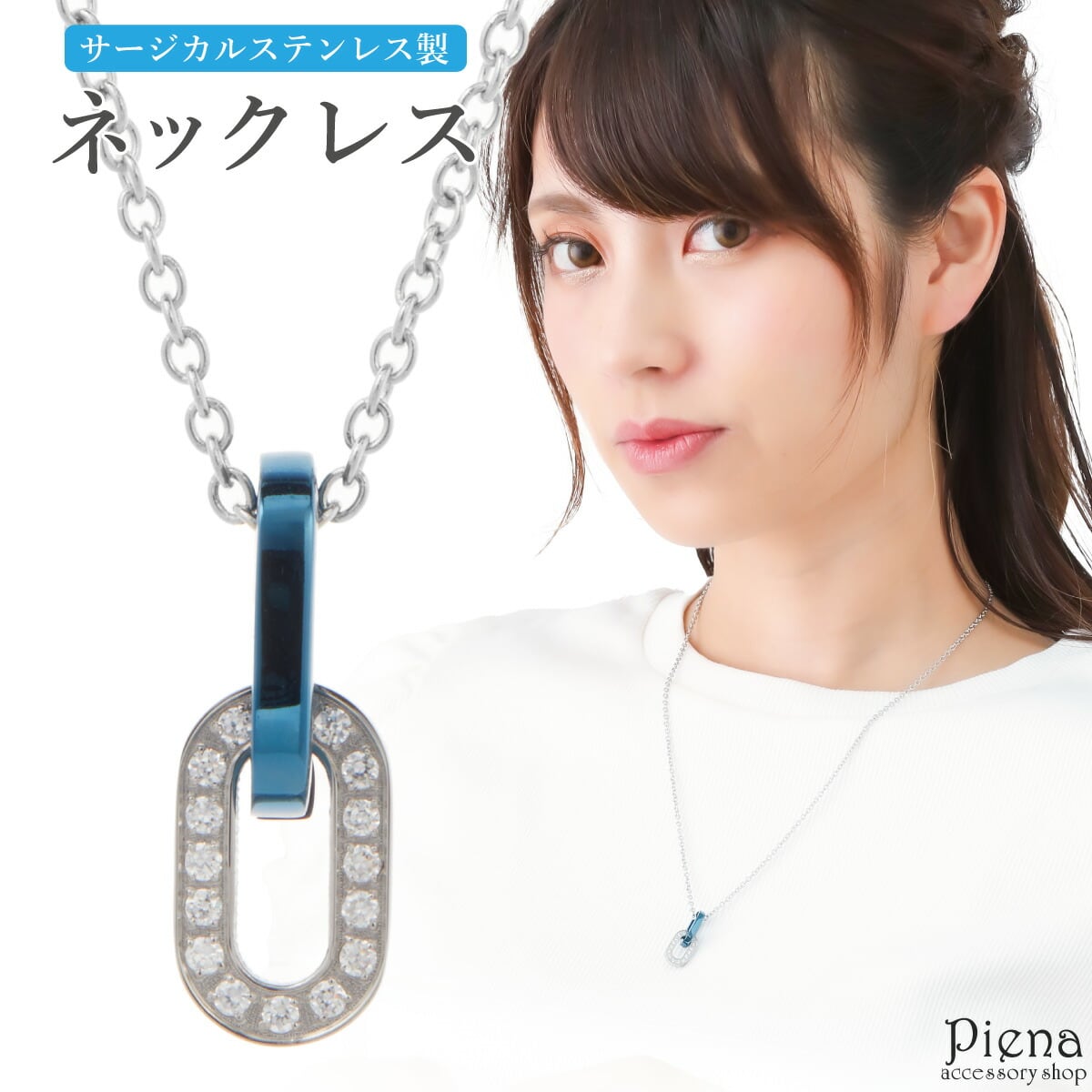 ネックレス ペンダント レディース サージカルステンレス製 鎖型 ブルー×シルバー リング チェーン 個性的 キラキラ お肌に優しい 金属アレルギー対応 上品 オシャレ かわいい 大人可愛い パーティー 誕生日 記念日 プレゼント ギフト メール便送料無料