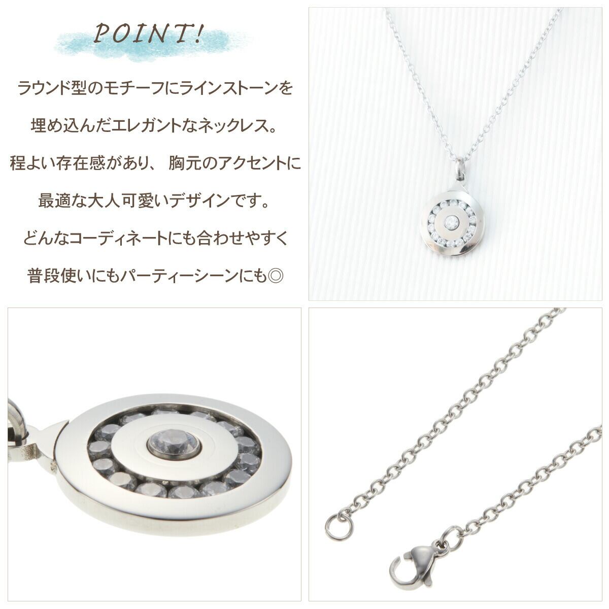 ネックレス ペンダント レディース サージカルステンレス製 ラウンド 円盤 円形 丸 キラキラ 個性的 お肌に優しい 金属アレルギー対応 上品 オシャレ かわいい 大人可愛い パーティー 誕生日 記念日 プレゼント ギフト メール便送料無料