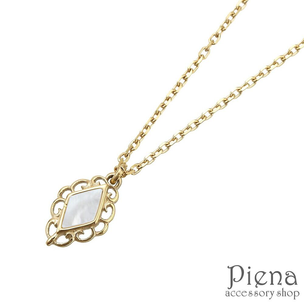 ペンダント レディース 金属アレルギー対応 安心 サージカルステンレス製 ゴールド ネックレス シェル ひし形 留め金もハート型でおしゃれ K14金 プレゼント ギフト 小さい 小粒 華奢 オフィス 女性用 あす楽