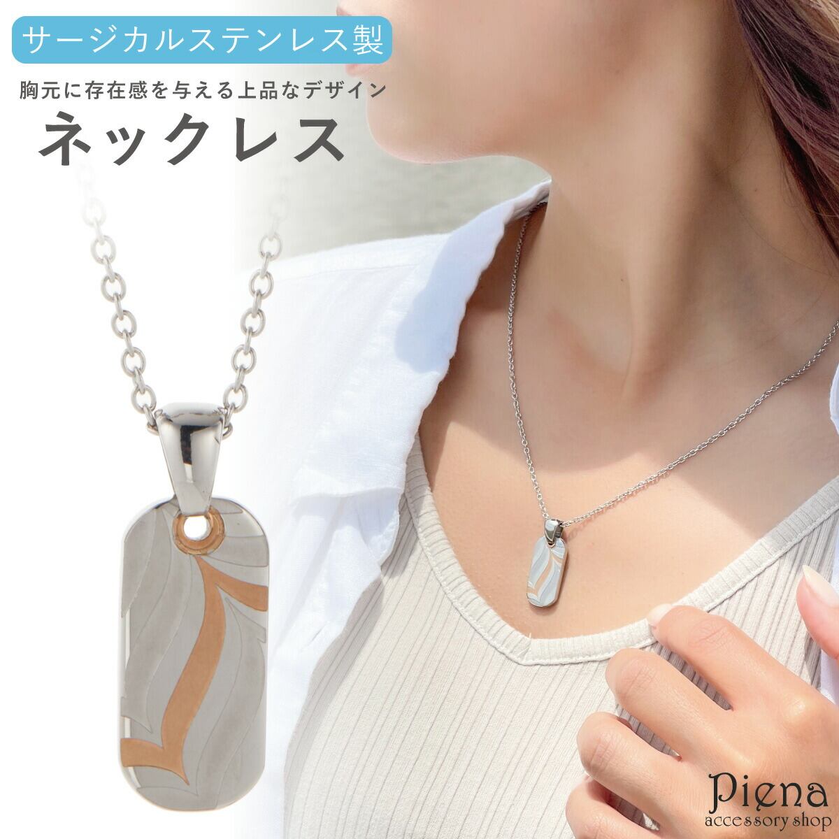 ネックレス ペンダント レディース サージカルステンレス316L製 プレート 楕円 彫り模様 シルバー×ピンクゴールド お肌に優しい 金属アレルギー対応 上品 かわいい 大人可愛い パーティー 誕生日 記念日 プレゼント ギフト メール便送料無料