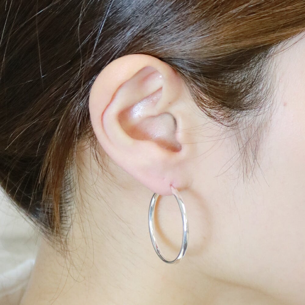 余計な装飾のないシンプルなデザインがラインの美しさを際立たせるフープピアスです。
