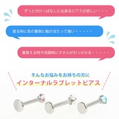 インターナル=“内部”のという意味で、ネジがジュエルの内部にあります。ピアスホールを傷つけにくいためファーストピアスにもオススメです。