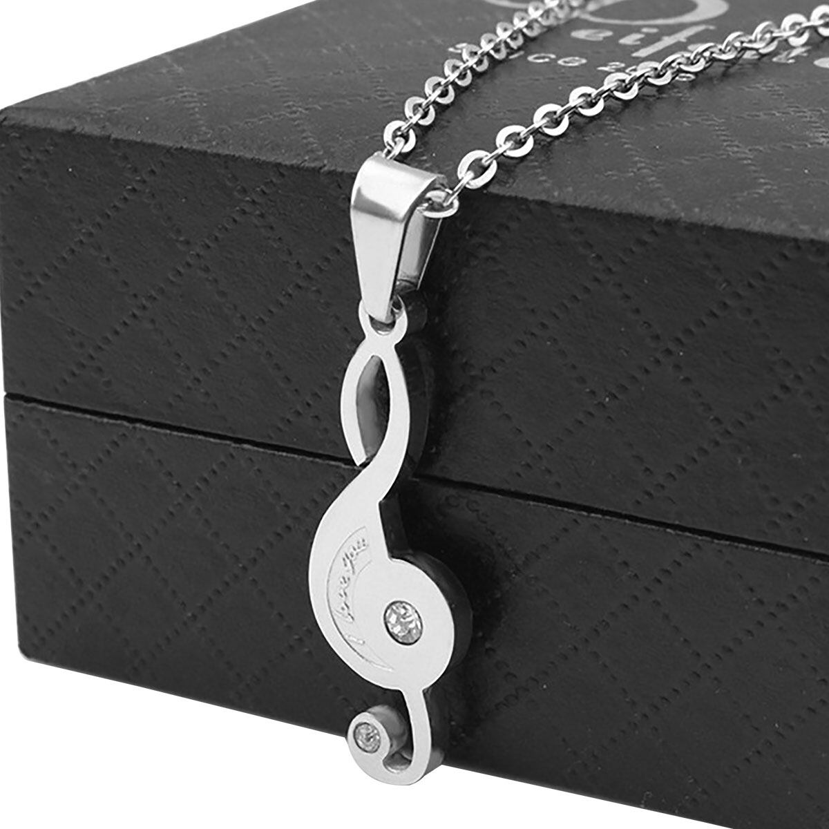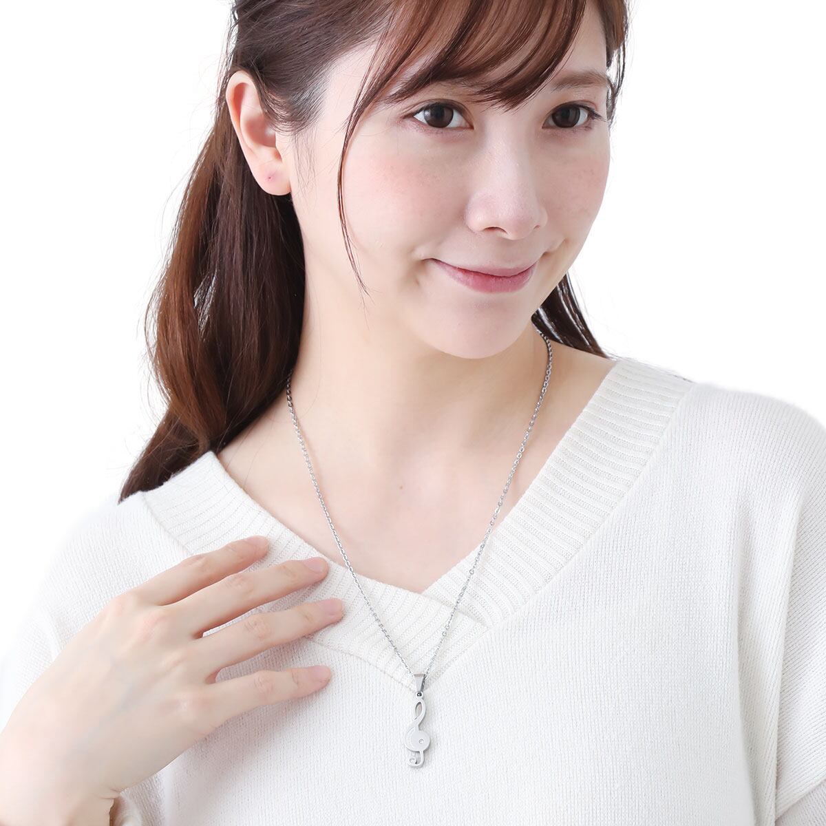 ペアネックレス ユニセックス レディース メンズ サージカルステンレス製 低金属アレルギー お肌に優しい ト音記号モチーフ 音符 八分音符 音楽 彫刻 彫り パズル ペンダント 50cm シルバー ゴールド おしゃれ 可愛い シンプル お揃い プレゼント ギフト メール便 送料無料