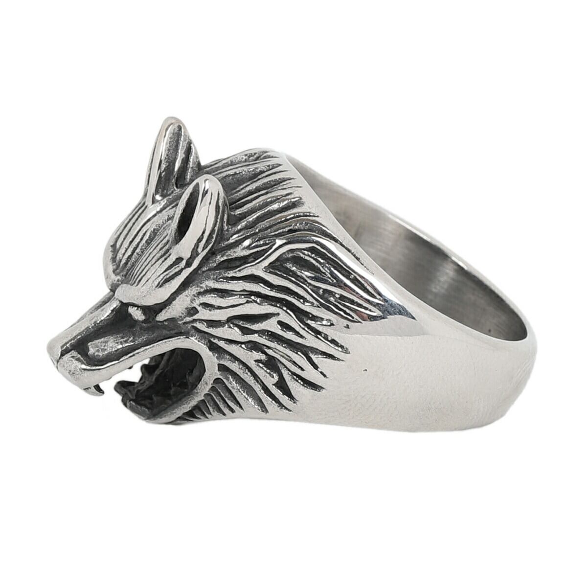 リング メンズ サージカルステンレス製 キツネ 狐 オオカミ 狼 顔 お肌に優しい 低金属アレルギー対応 安心 大きいサイズ 立体的 躍動感 ごつめ 太め かっこいい おしゃれ ワイルド 普段使い カジュアル 記念日 誕生日 プレゼント ギフト メール便送料無料 あす楽