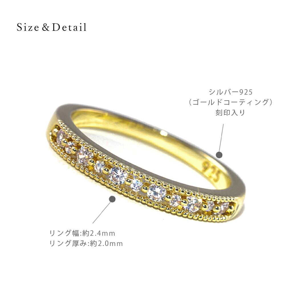 リング レディース キュービックジルコニア ハーフエタニティ ミル打ち アンティーク感 重ね付け 大きめサイズ インデックスリング 大きいサイズ 14号 17号 19号 21号 かわいい おしゃれ ギフト プレゼント 贈り物 記念日 誕生日 メール便送料無料