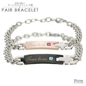 ブレスレット レディース メンズ サージカルステンレス製 お肌に優しい アレルギー対応 錆びにくい ラインストーン ペア クロス 十字架 ピンクゴールド ブラック 重厚感 簡単装着 記念日 誕生日 プレゼント ギフト かわいい かっこいい おしゃれ