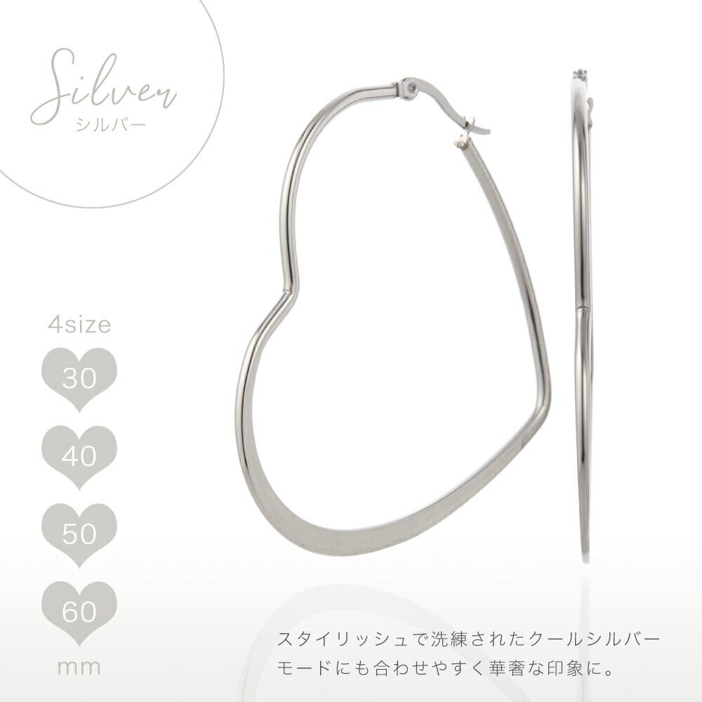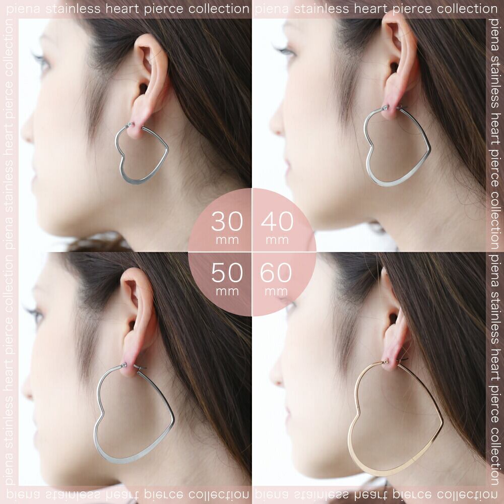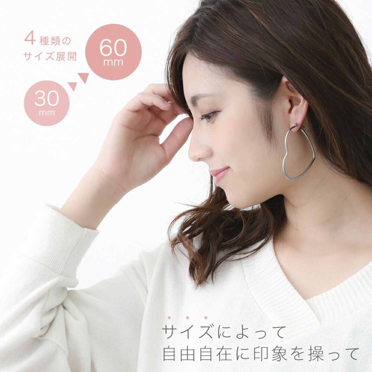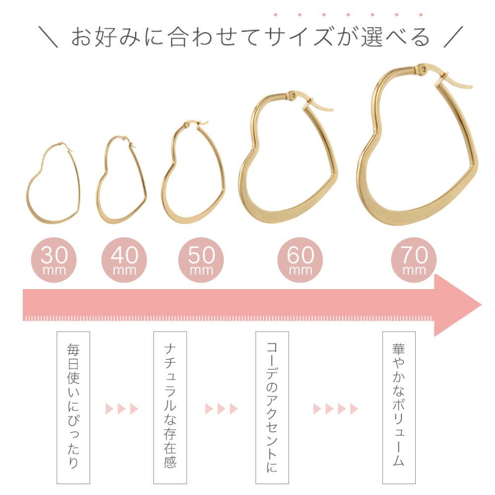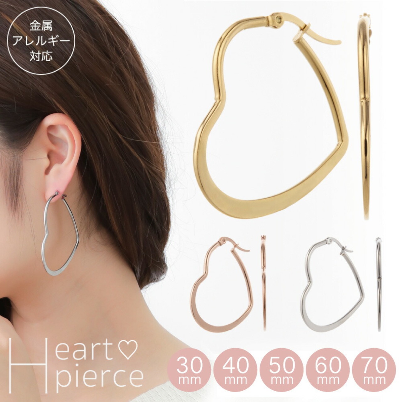 ハートフープピアス つけっぱなし レディース サージカルステンレス 金属アレルギー対応 低アレルギー シルバー ゴールド ピンクゴールド 30mm 40mm 50mm 60mm 70mm 小ぶり 大ぶり ふんわり シンプル フェミニン 上品 誕生日 プレゼント ギフト