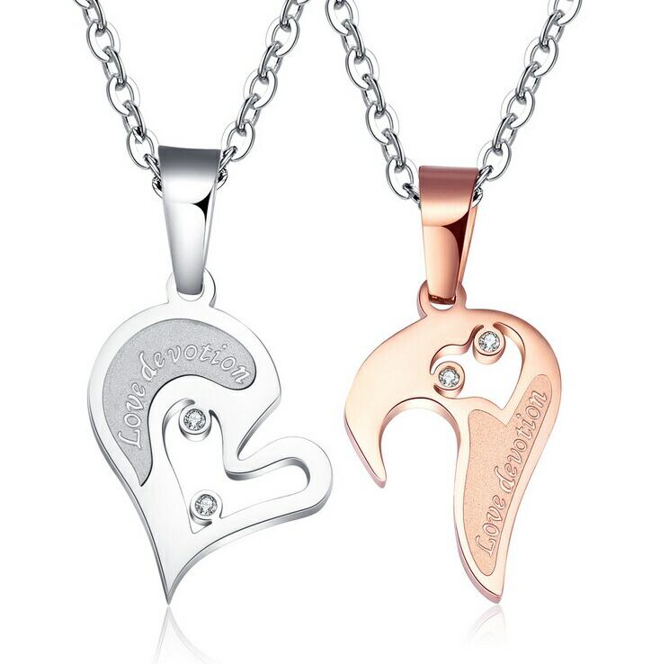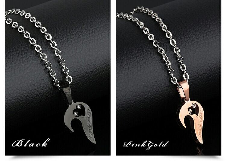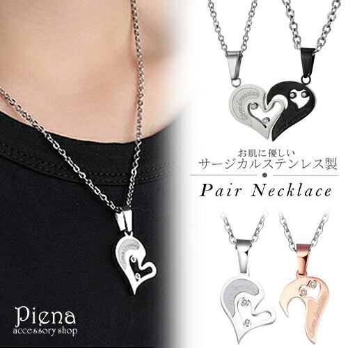 ペアネックレス レディース メンズ サージカルステンレス ラインストーン ハート お肌に優しい 金属アレルギー対応 金アレ 安心 愛のメッセージ 刻印 重なる 綺麗 おしゃれ かっこいい 恋人 親友 夫婦 カジュアル 普段使い 記念日 誕生日 プレゼント ギフト メール便送料無料