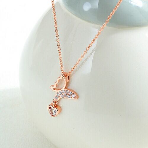 ネックレス レディース ラインストーン バタフライ 蝶 ハート ピンクゴールドコーティング 揺れる シンプル 綺麗 可愛い おしゃれ 上品 煌びやか 華やか 女性らしい カジュアル フォーマル 誕生日 プレゼント ギフト メール便送料無料