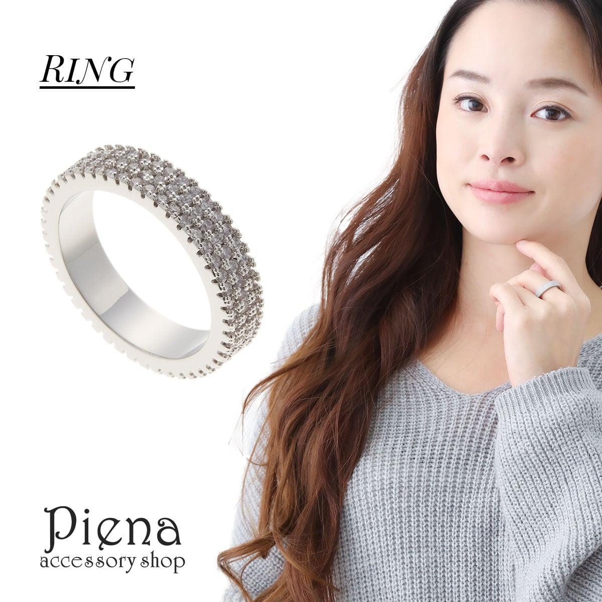 リング レディース 真鍮製 ラインストーン キュービックジルコニア 3列 フルエタニティリング ゴージャス シンプル 大ぶり ボリューム 上品 おしゃれ ゴージャス 記念日 誕生日 指輪 プレゼント ギフト メール便送料無料