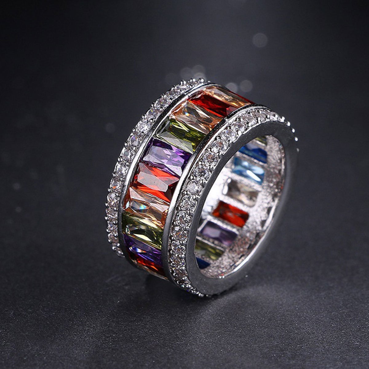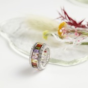 カラフルに光り輝く幅広エタニティリング。
