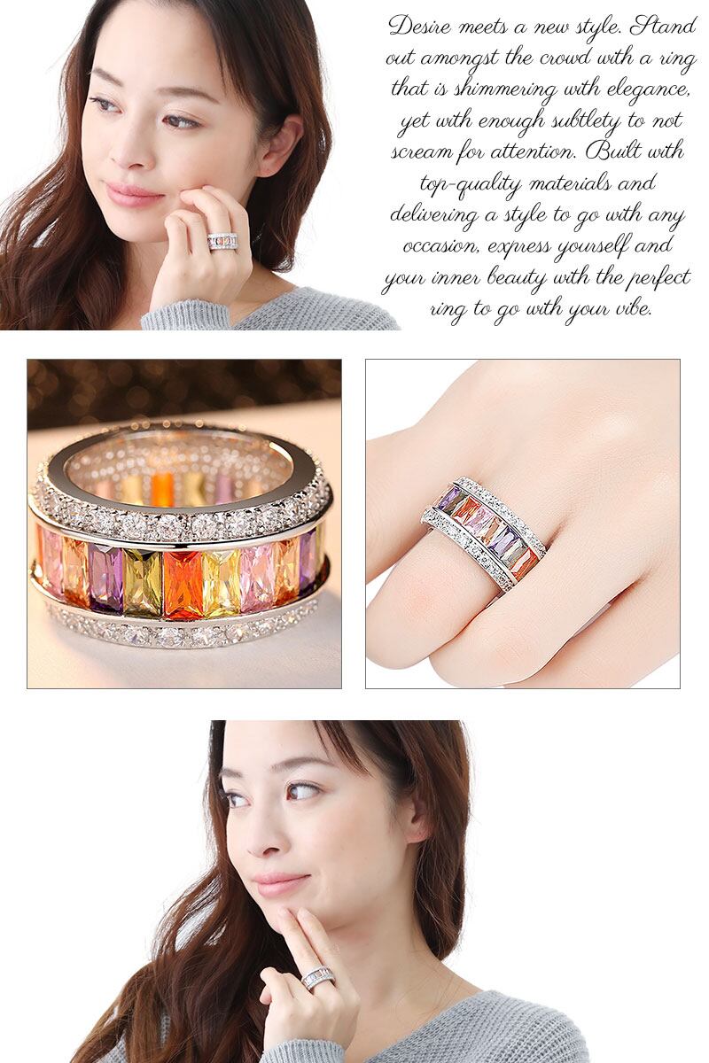 リング レディース 幅広エタニティリング 太めでカラフル マルチカラー ゴージャス 大ぶり ボリューム 高級感 おしゃれ ゴージャス 記念日 誕生日 指輪 真鍮製 プレゼント ギフト メール便送料無料