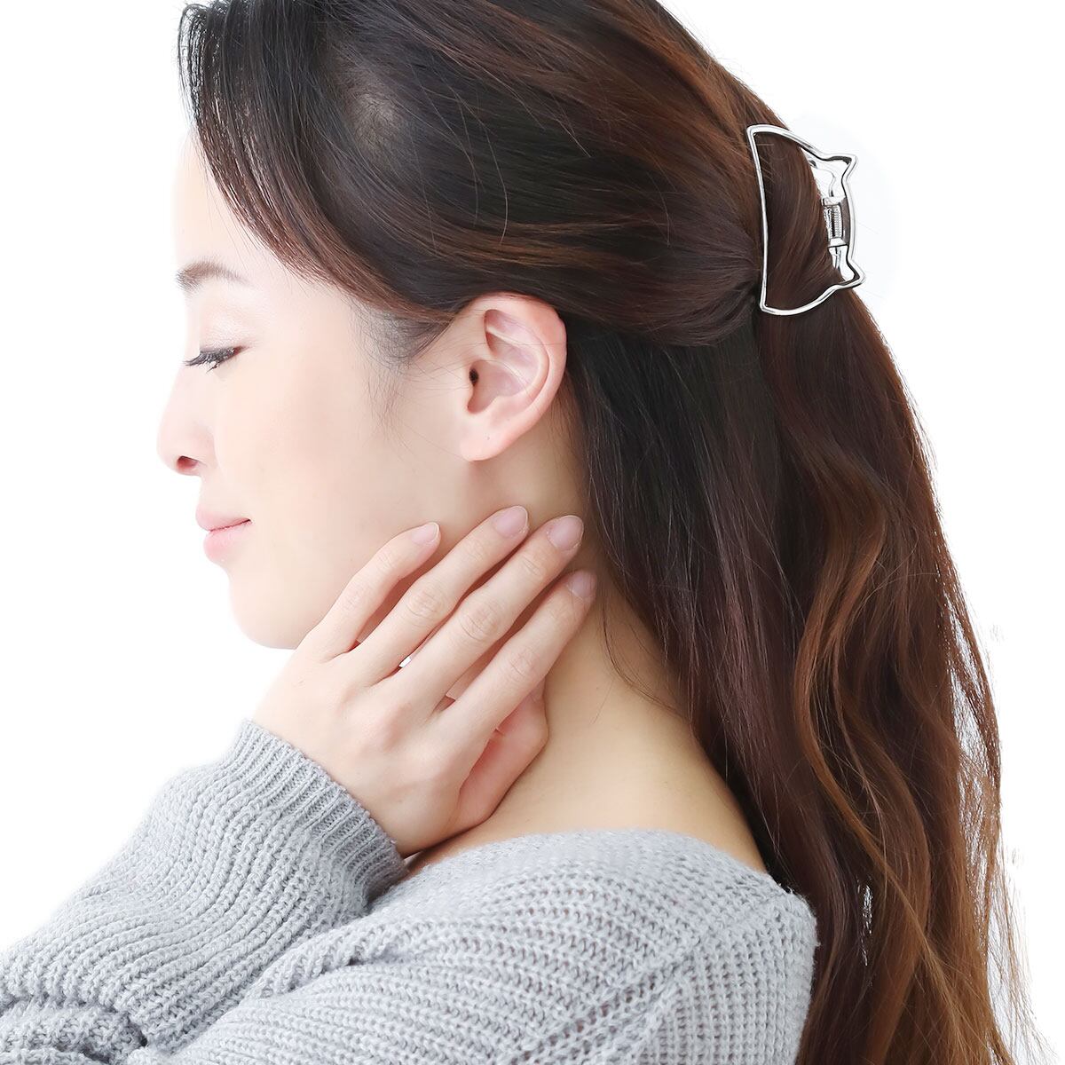 バンス ヘアクリップ レディース 猫耳 ネコ キャット 動物モチーフ 6色 ヘアアクセサリー バレッタ おしゃれ 上品 大人可愛い 記念日 誕生日 プレゼント ギフト