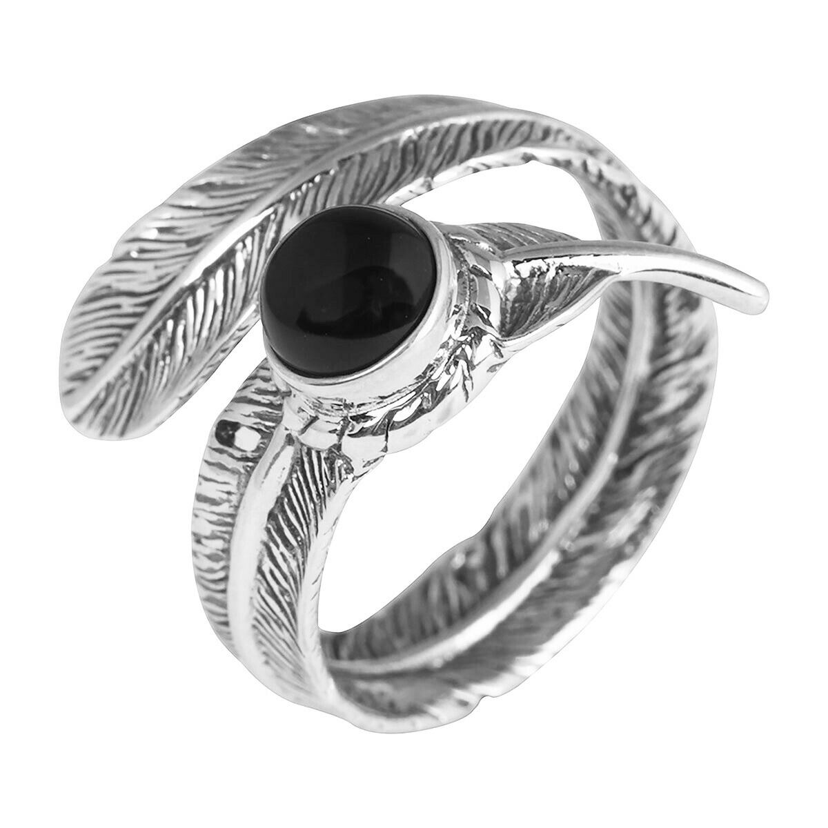 リング レディース メンズ シルバー925 オニキス フェザー 羽 2種類 フリーサイズ 燻し加工 巻き付きタイプ 銀製品 立体感 おしゃれ カッコいい ロック インディアン カジュアル 普段使い 記念日 誕生日 プレゼント ギフト メール便送料無料