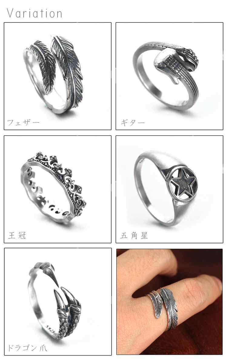 リング メンズ レディース シルバー925製 フェザー 羽根 ギター 楽器 王冠 クラウン 五角星 スター ドラゴンの爪 恐竜 燻し シンプル スタイリッシュ オシャレ ごつめ ロック パンク 指輪 プレゼント ギフト ラッピング メール便送料無料