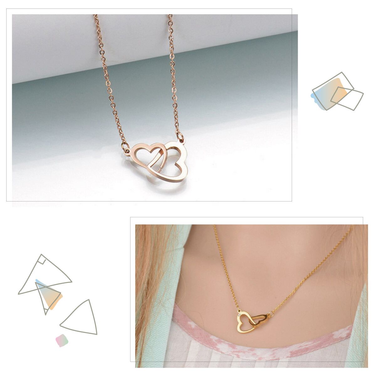 ネックレス レディース サージカルステンレス製 オープンハート ハートフレーム ハート型 2連 お肌に優しい 低金属アレルギー対応 上品かわいい 大人可愛い 恋人 誕生日 記念日プレゼント ギフト メール便送料無料