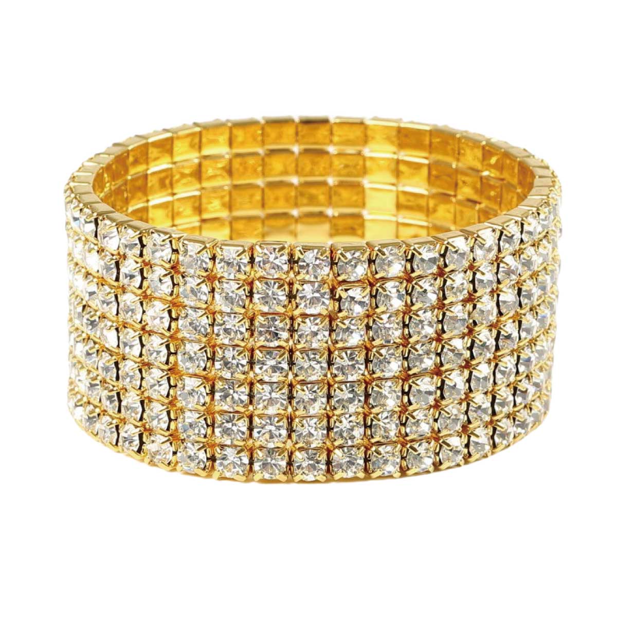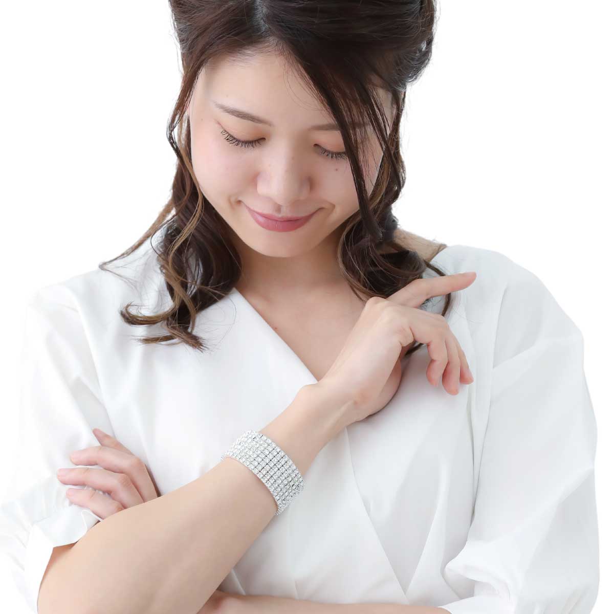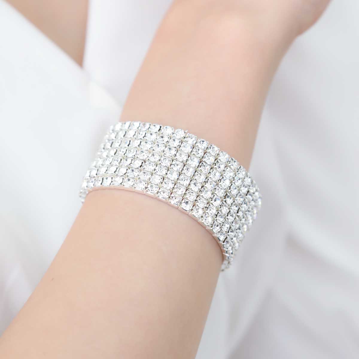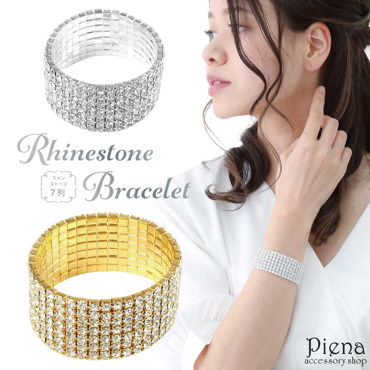 ブレスレット レディース ラインストーン 7列 パヴェ バングル ワイド 幅広 キラキラ 煌めく ゴージャス パーティー イベント 結婚式 二次会 披露宴 誕生日 記念日 プレゼント ギフト