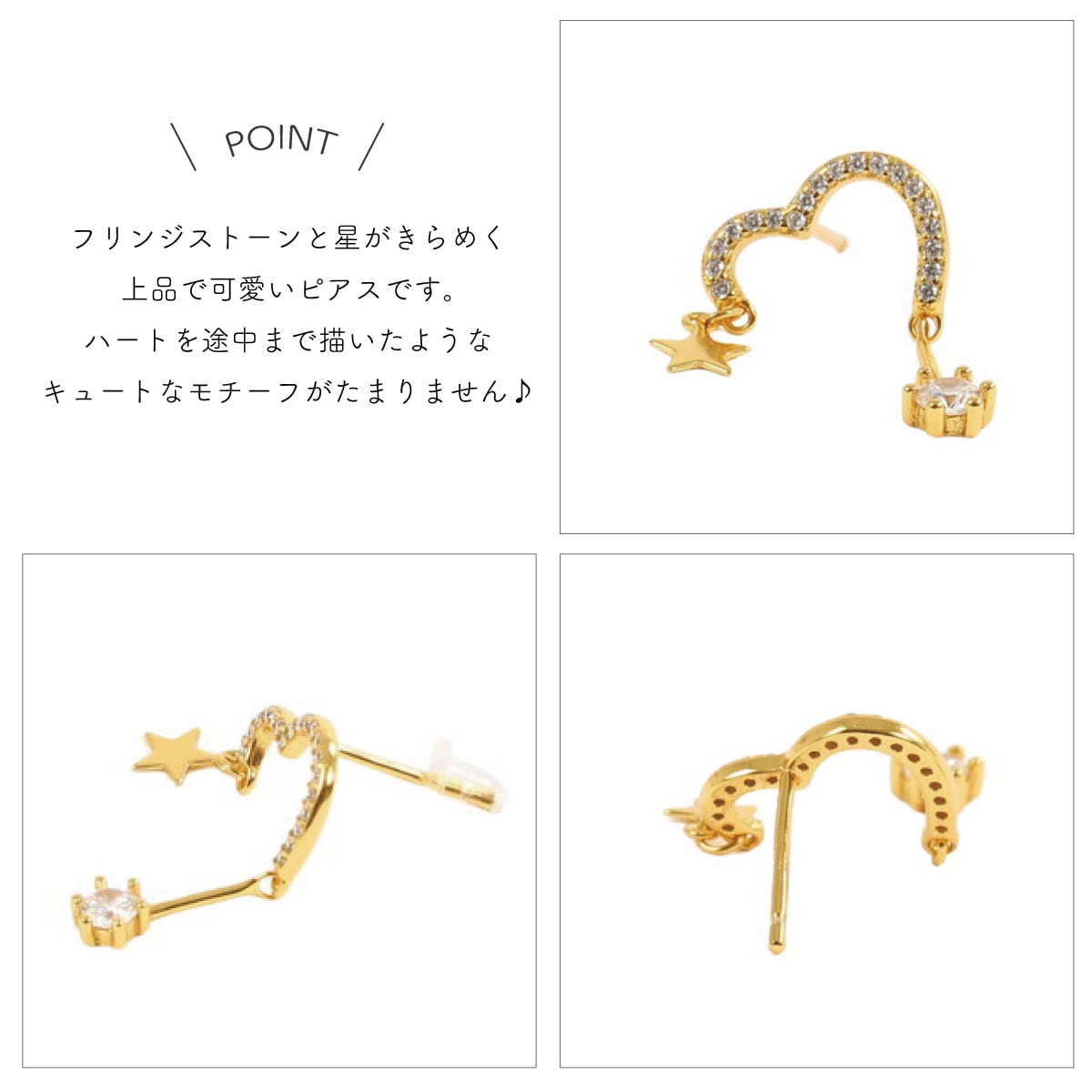 ピアス レディース シルバー925 キュービックジルコニア ハート 星 フリンジストーン キラキラ 個性的 小ぶり 小さい オシャレ 上品 キュート かわいい 大人可愛い 誕生日 記念日 プレゼント ギフト メール便送料無料