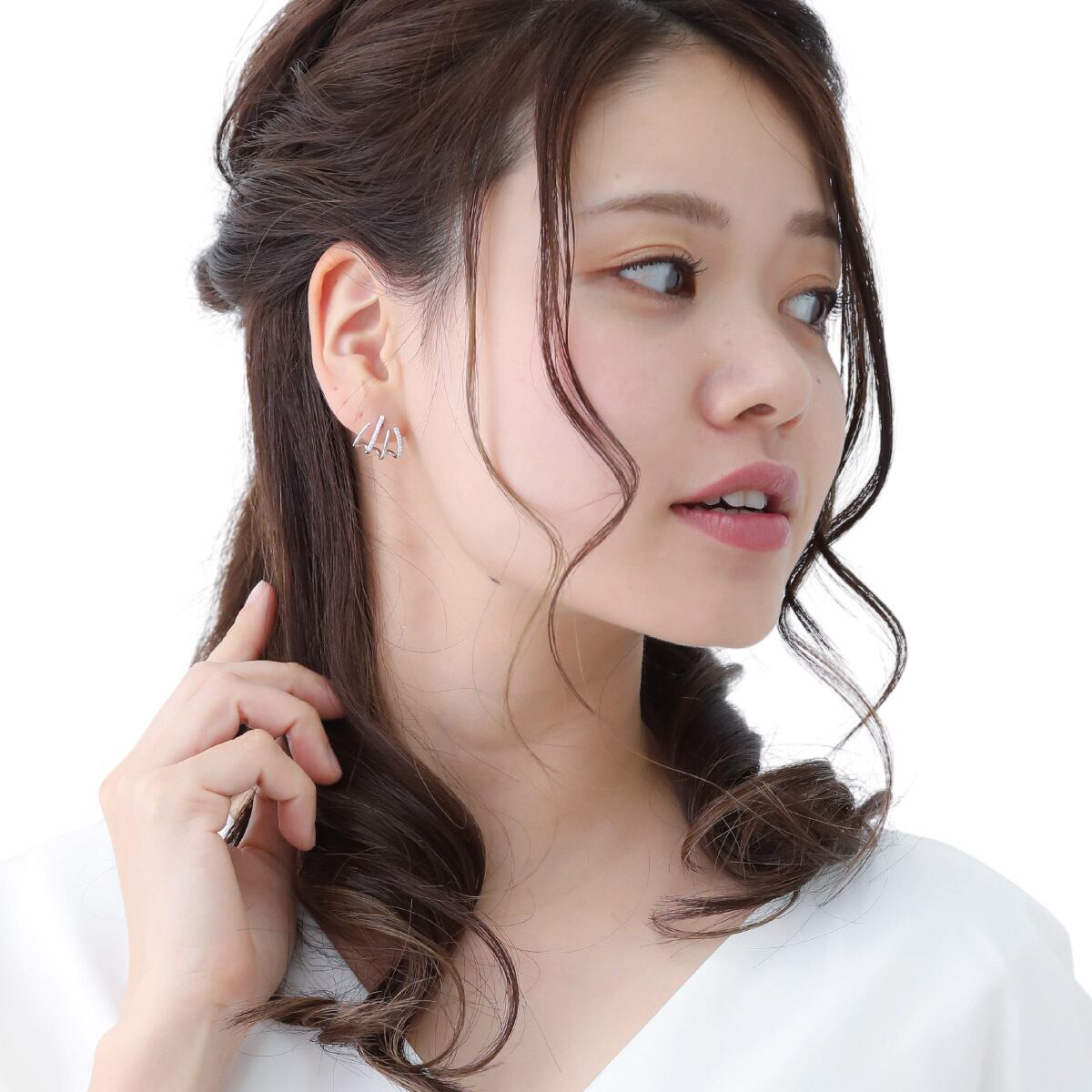 ピアス レディース シルバー925 キュービックジルコニア ハーフフープ キラキラ 4連 重ねづけ 個性的 上品 華奢 繊細 かわいい 大人可愛い 誕生日 記念日 プレゼント ギフト メール便送料無料