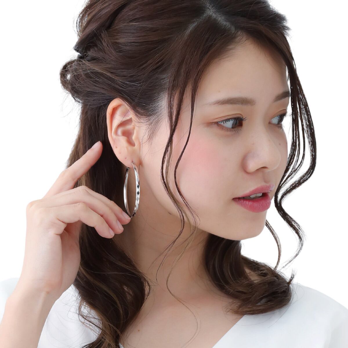 ピアス レディース シルバー925 フープピアス ダイヤカット 菱形 カッティング 直径50mm ビッグフープ 大きい 大振り 華奢 細い かわいい 大人可愛い エレガント キレイ スタイリッシュ 誕生日 記念日 プレゼント ギフト メール便送料無料