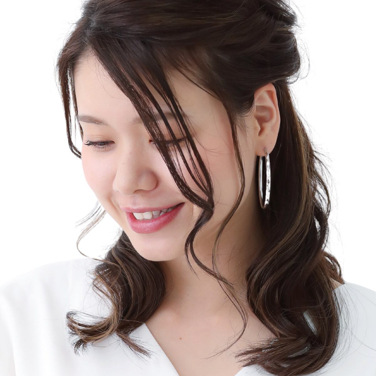 印象的なビックシルエットのフープピアスです。