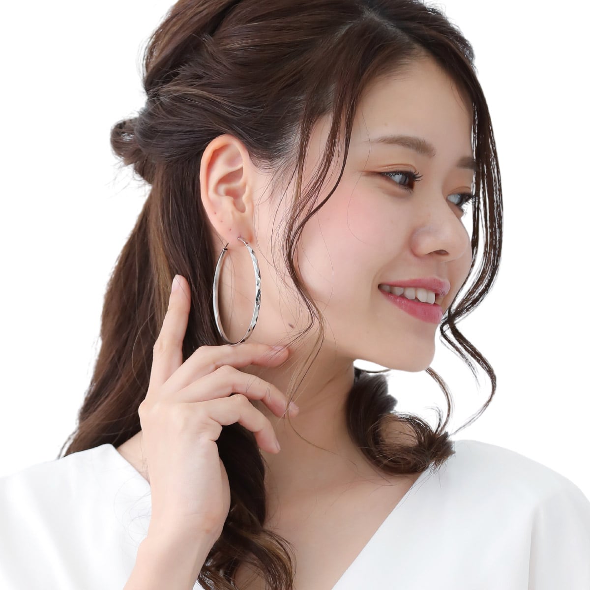 ピアス レディース シルバー925 フープピアス ダイヤカット 菱形 カッティング 直径60mm ビッグフープ 大きい 大振り 華奢 細い かわいい 大人可愛い エレガント キレイ スタイリッシュ 誕生日 記念日 プレゼント ギフト メール便送料無料